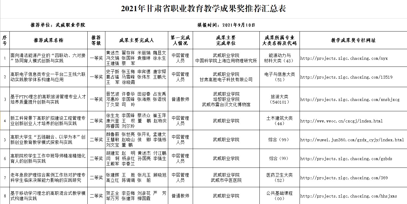 2021年甘肅省職業(yè)教育教學(xué)成果獎(jiǎng)申報(bào)