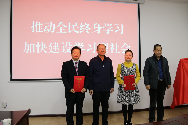 啟動儀式對獲得2017年我市榮獲全國、全省“百姓學(xué)習(xí)之星”“終身學(xué)習(xí)品牌項目”“優(yōu)秀成人繼續(xù)教育院校(培訓(xùn)機(jī)構(gòu))”等獲獎個人和單位進(jìn)行了表彰。市教育局局長李忠民、武威職業(yè)學(xué)院副院長翟存祥對獲獎單位和個人進(jìn)行了頒獎。市教育局職成教科負(fù)責(zé)人李學(xué)德宣讀成立“武威市社區(qū)教育指導(dǎo)服務(wù)中心”的文件,由市教育局局長李忠民、武威職業(yè)學(xué)院副院長翟存祥為“武威市社區(qū)教育指導(dǎo)服務(wù)中心”揭牌。張應(yīng)偉對《武威市教育局等九部門<關(guān)于進(jìn)一步推進(jìn)社區(qū)教育發(fā)展意見的實施方案》文件精神進(jìn)行了傳達(dá)。
