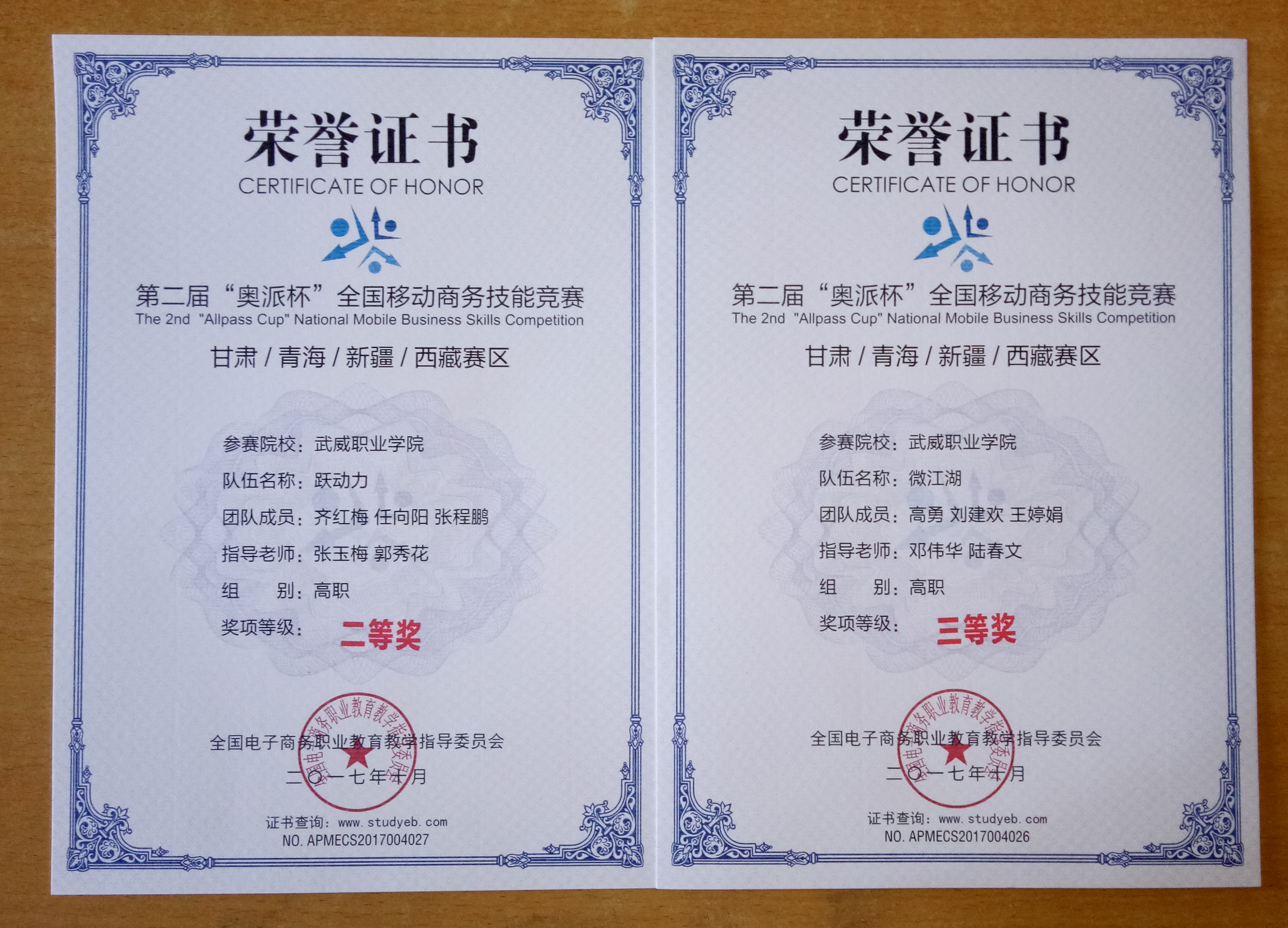 來自甘、青、新、藏24所院校的54支中、高職隊伍參加比賽。此次大賽旨在檢驗和展示職業(yè)院校移動商務(wù)專業(yè)教學成果,以賽促建,以賽促教,推進移動商務(wù)專業(yè)在職業(yè)院校中的布點建設(shè),引領(lǐng)高等職業(yè)學校電子商務(wù)專業(yè)教學改革及移動商務(wù)專業(yè)建設(shè)的新趨勢。競賽經(jīng)過激烈的角逐,我系與電子信息工程系聯(lián)合由齊紅梅、任向陽、張程鵬組成的“躍動力”隊獲得團體二等獎,由高勇、劉建歡、王婷娟組成的“微江湖”隊獲得省級三等獎,我系教師郭秀花和電子信息工程系張玉梅老師分別獲得優(yōu)秀指導老師獎。