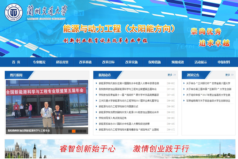 2017年度學(xué)院以平臺建設(shè)為抓手,積極開展專業(yè)建設(shè),取得重大進(jìn)展,以“深化內(nèi)涵發(fā)展、服務(wù)地方經(jīng)濟(jì)”為目標(biāo),積極開展校企合作,取得明顯實效。其中學(xué)院申報的能源與動力工程專業(yè)獲批甘肅省創(chuàng)新創(chuàng)業(yè)試點改革專業(yè);與天合光能有限公司達(dá)成協(xié)議由其出資的“思源陽光”基金會每年提供5萬元的創(chuàng)新創(chuàng)業(yè)獎學(xué)金;與北京海瑞克有限公司達(dá)成協(xié)議為新能源科學(xué)與工程專業(yè)的優(yōu)秀學(xué)生提供獎學(xué)金;與北京群菱能源科技有限公司達(dá)成協(xié)議冠名贊助學(xué)院新能源開發(fā)與利用知識競賽;與蘭州海紅技術(shù)股份有限公司、甘肅建投武威新能源有限公司、中節(jié)能涼州發(fā)電公司等企業(yè)簽訂協(xié)議成立校外教學(xué)實習(xí)基地。