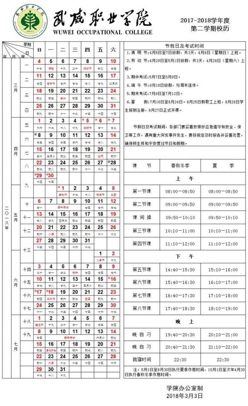 2017-2018學年度第二學期校歷