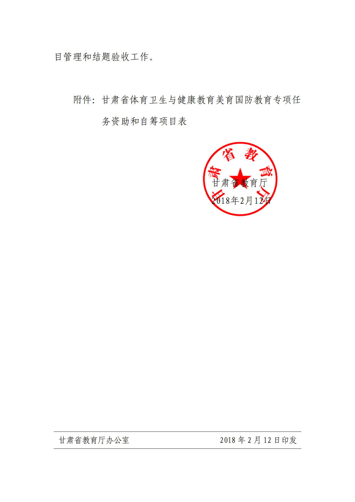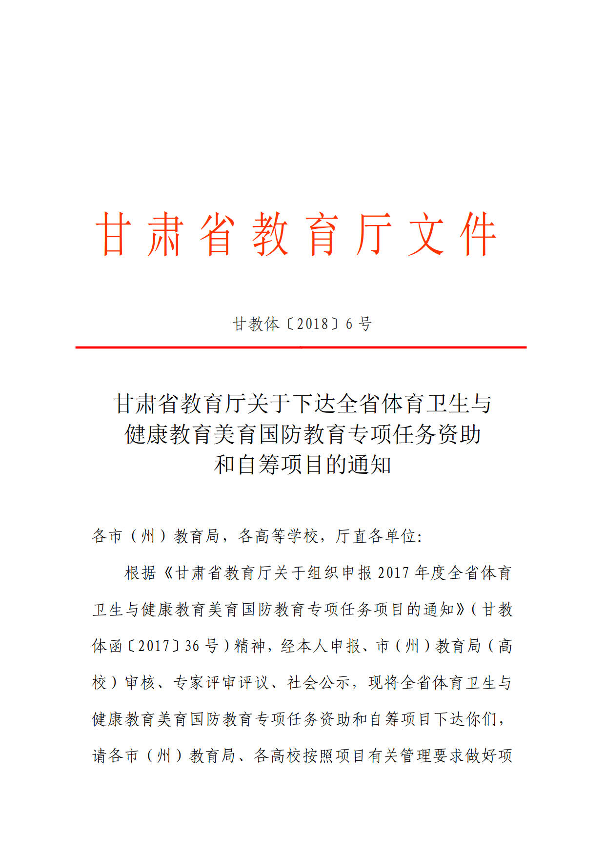 甘肅省教育廳關(guān)于下達(dá)全省體育衛(wèi)生與健康教育美育國防教育專項任務(wù)資助和自籌項目的通知-正文