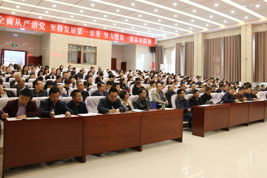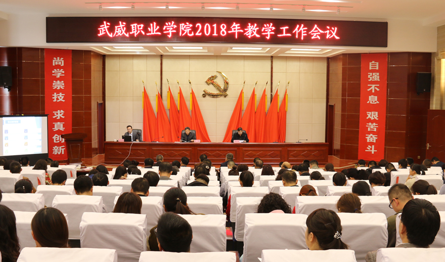 黨委副書記趙明對學院2017年教學工作做了簡要回顧與總結(jié),結(jié)合全國全省教育工作會議精神,深入分析了學院目前面臨的困難與存在的問題,從八個方面對2018年學院教學重點工作做了安排部署。一是加強思想政治建設(shè),貫徹落實中央決策部署。學習貫徹習近平新時代中國特色社會主義思想和黨的十九大精神,貫徹落實全國教育大會精神,細化落實職業(yè)教育具體工作措施。二是深化改革,增強辦學活力。堅持依法治校,繼續(xù)完善內(nèi)部治理體系,加強學術(shù)委員會、職稱評審委員會建設(shè),健全管理體系和運行機制,大力推進人才培養(yǎng)模式改革和招生考試制度改革。三是強化內(nèi)涵,全力推進優(yōu)質(zhì)高職院校建設(shè)。抓實推進優(yōu)質(zhì)高職院校6個模塊19個項目94項任務312條子任務的建設(shè)工作,加強內(nèi)部協(xié)調(diào),全力推進。加強專業(yè)內(nèi)涵建設(shè)和實踐教學內(nèi)涵建設(shè),建立一批優(yōu)質(zhì)特色專業(yè)和一批高水平生產(chǎn)性實訓基地;積極開展創(chuàng)新創(chuàng)業(yè)教育實踐活動,加大社會培訓力度,積極探索開展國際合作與交流;加強智慧校園和校園文化建設(shè)。四是優(yōu)化結(jié)構(gòu),全力打造一批高水平優(yōu)質(zhì)特色專業(yè)。利用直屬附屬醫(yī)院、校辦企業(yè)武威泰豐新能源有限責任、甘肅(武威)國際陸港和武威保稅物流中心等優(yōu)勢,加快重點專業(yè)建設(shè)力度,打造3~5個國家級高水平優(yōu)質(zhì)特色專業(yè)。五是合作培養(yǎng),著力打造專兼結(jié)合的高水平教師隊伍。大力實施教師素質(zhì)提升工程,完善同濟大學編制的《武威職業(yè)學院師資能力提升培訓方案》,落實西安交通大學、天津職業(yè)大學簽訂的合作協(xié)議,推進教師教學發(fā)展中心建設(shè)與運行,強化專業(yè)帶頭人、新進教師、骨干教師、優(yōu)秀青年教師的培養(yǎng)力度。六是育人為本,關(guān)注學生成長成才。優(yōu)化育人環(huán)境,開足開好思想政治類、人文素養(yǎng)提升類課程,開展校內(nèi)職業(yè)技能競賽,鼓勵支持參加省級以上比賽,培養(yǎng)學生能力。七是深化產(chǎn)教融合,提升社會服務水平。充分發(fā)揮職業(yè)教育集團作用,深化“職業(yè)教育+產(chǎn)業(yè)園區(qū)+生產(chǎn)基地”的校企合作模式;提升校辦企業(yè)、直屬附屬醫(yī)院的教學服務功能;各專業(yè)要拓展產(chǎn)教融合渠道,精準施策,服務國家戰(zhàn)略。八是完善質(zhì)量保障機制,提升人才培養(yǎng)質(zhì)量。編制并逐步推行教學工作診斷與改進方案,學習實施精細化管理模式,加大教學督查力度,規(guī)范教學秩序,提高教育教學管理水平。