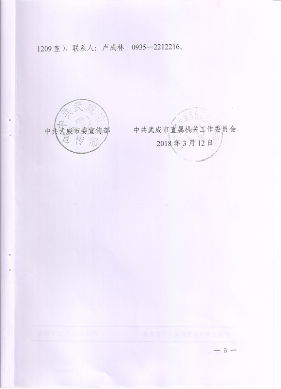現(xiàn)將中共武威市委宣傳部、中共武威市直屬機關(guān)工作委員會《關(guān)于舉辦市直機關(guān)“不忘初心? 牢記使命”藝術(shù)作品展的通知》(武市直發(fā)〔2018〕9號)轉(zhuǎn)發(fā)你們,請各部門、單位根據(jù)要求認真組織,積極參與。將參賽作品于4月2日前報宣傳統(tǒng)戰(zhàn)部辦公室,宣傳統(tǒng)戰(zhàn)部對報送作品匯總后統(tǒng)一報送市直屬機關(guān)工委。