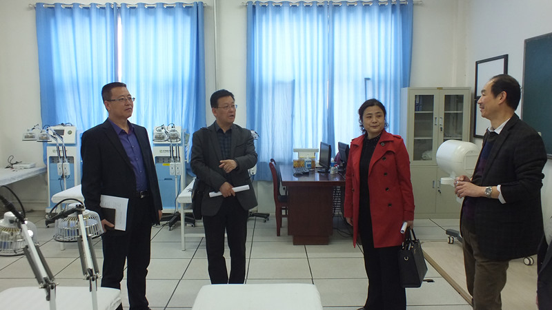 藥學(xué)系主任魏潤明和醫(yī)學(xué)技術(shù)系主任楊如松陪同來賓先后參觀了學(xué)院一期建設(shè)成果以及藥學(xué)專業(yè)實(shí)驗(yàn)室、口腔醫(yī)學(xué)技術(shù)專業(yè)實(shí)訓(xùn)室和中醫(yī)康復(fù)治療技術(shù)專業(yè)實(shí)訓(xùn)室等。