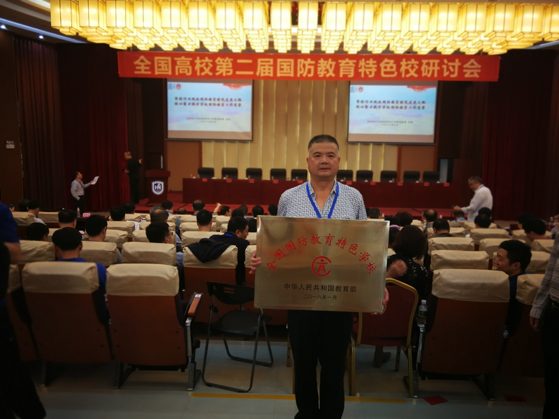 在會(huì)上,中國(guó)高等教育學(xué)會(huì)國(guó)防教育工作委員會(huì)組委會(huì)向?qū)W院頒發(fā)了“全國(guó)國(guó)防教育特色學(xué)?!迸啤?/p>