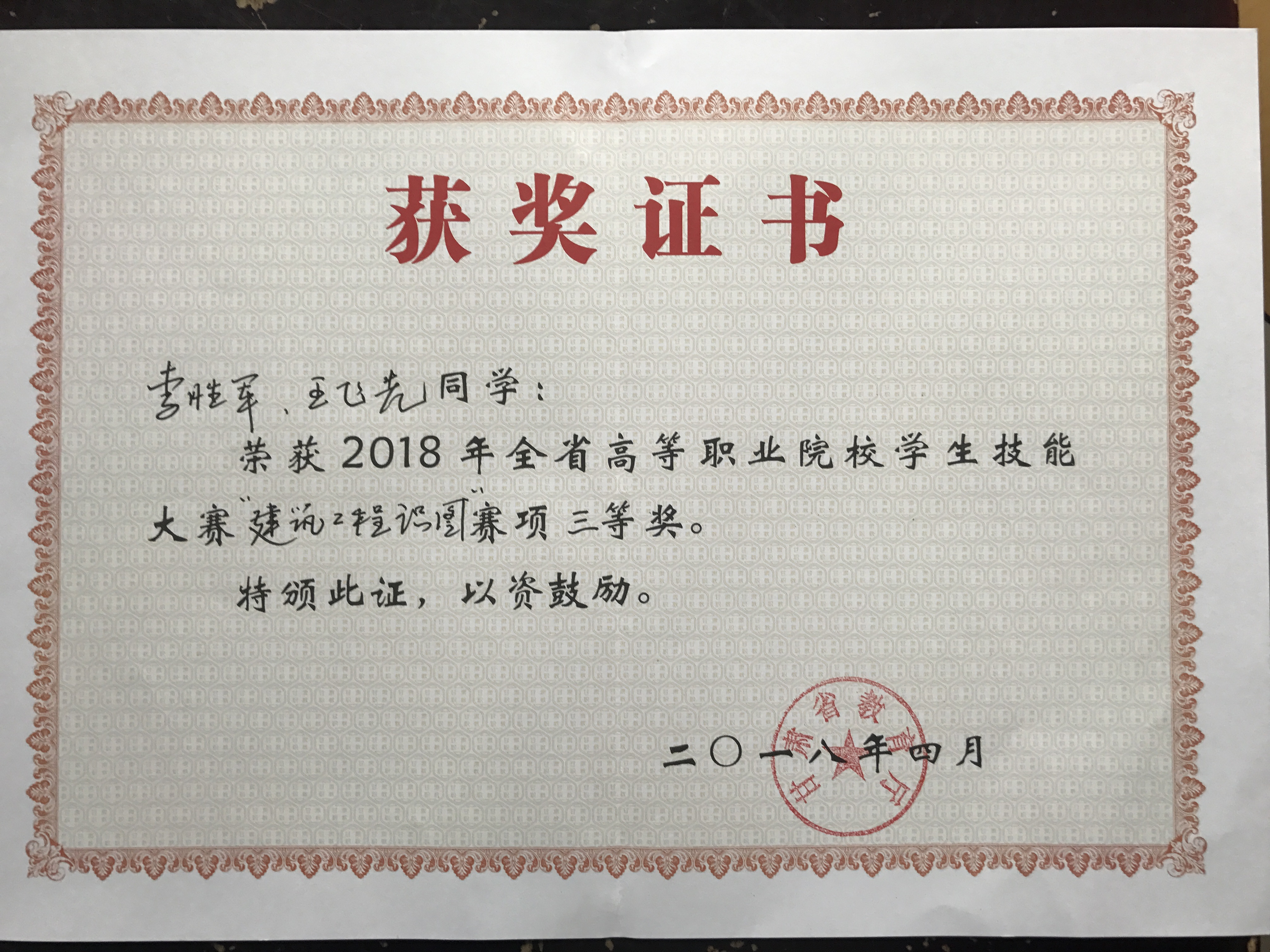 筑工程系學生在2018年全省職業(yè)院校技能大賽中榮獲三等獎