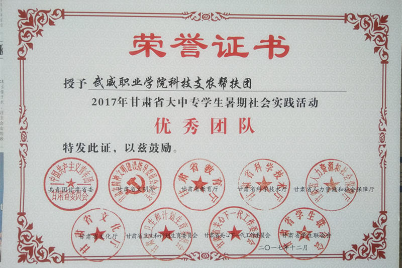 活動結(jié)束后,根據(jù)《關(guān)于開展2017年甘肅省大中專學(xué)生志愿者暑期文化科技衛(wèi)生“三下鄉(xiāng)”社會實踐活動的通知》要求,我系組織的科技支農(nóng)幫扶團集體和個人被評為甘肅省暑期“三下鄉(xiāng)”社會實踐活動先進(jìn)集體和個人。
