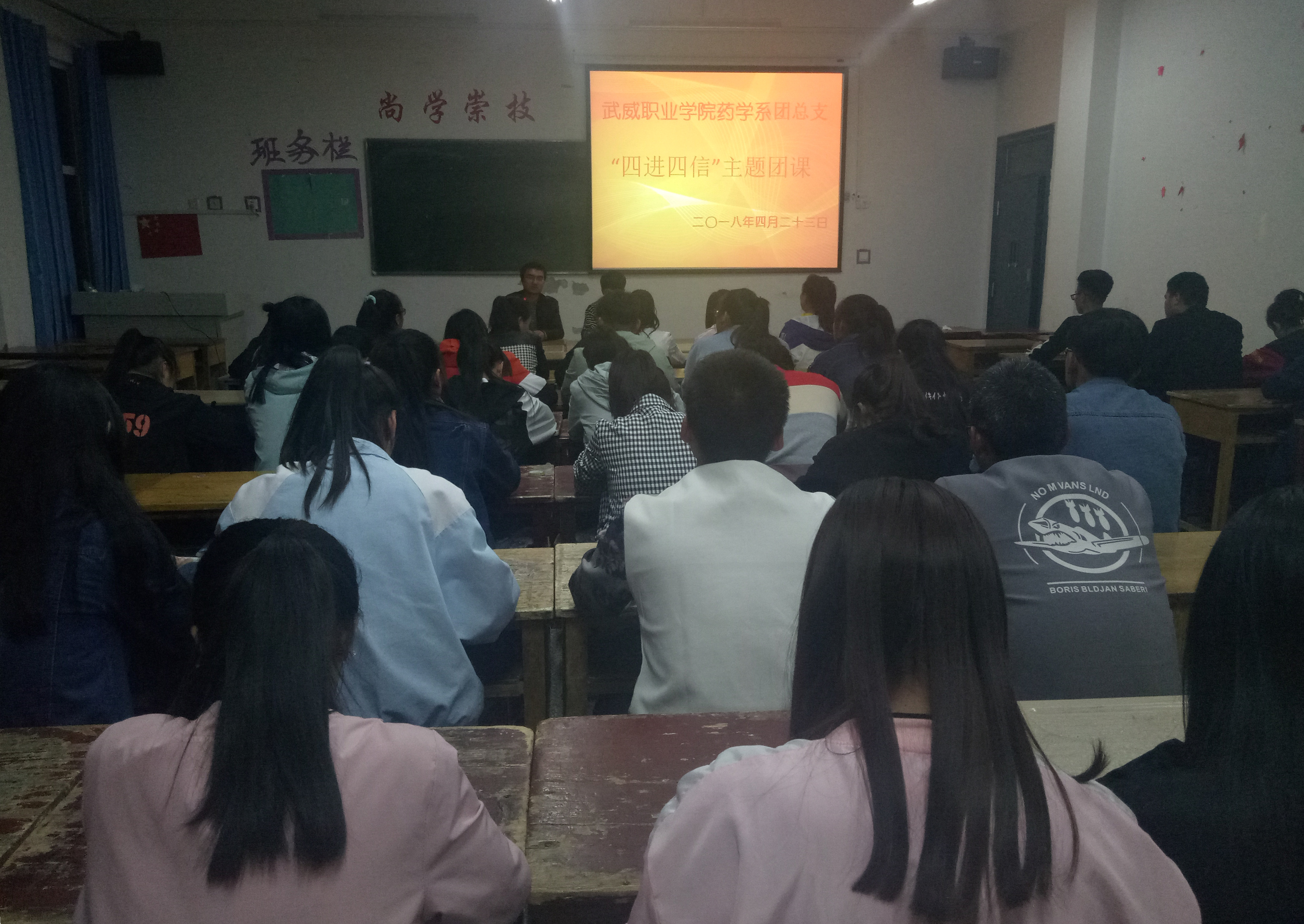 為深入學習宣傳貫徹習近平新時代中國特色社會主義思想,堅持以習近平新時代中國特色社會主義思想武裝團員干部和團員青年學生頭腦,積極推進各項工作開展。2018年4月23日晚,藥學系團總支組織16級團員青年及17級入團積極分子在明遠樓501教室開展關(guān)于“四進四信”的主題團課活動,團課由要藥學系團總支書記陳輝生主持。