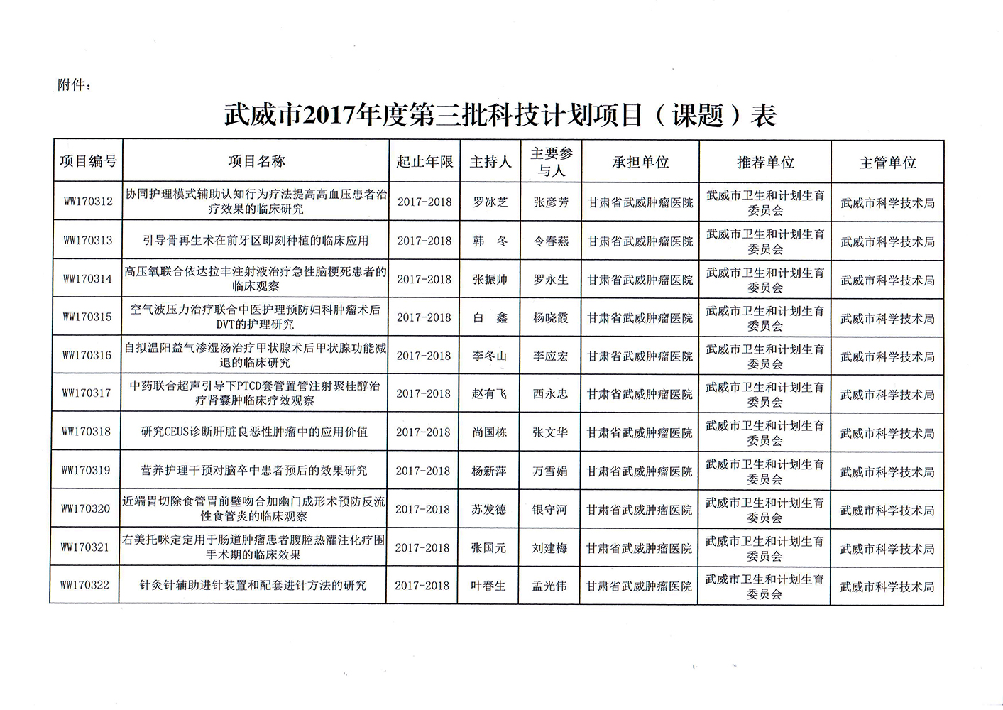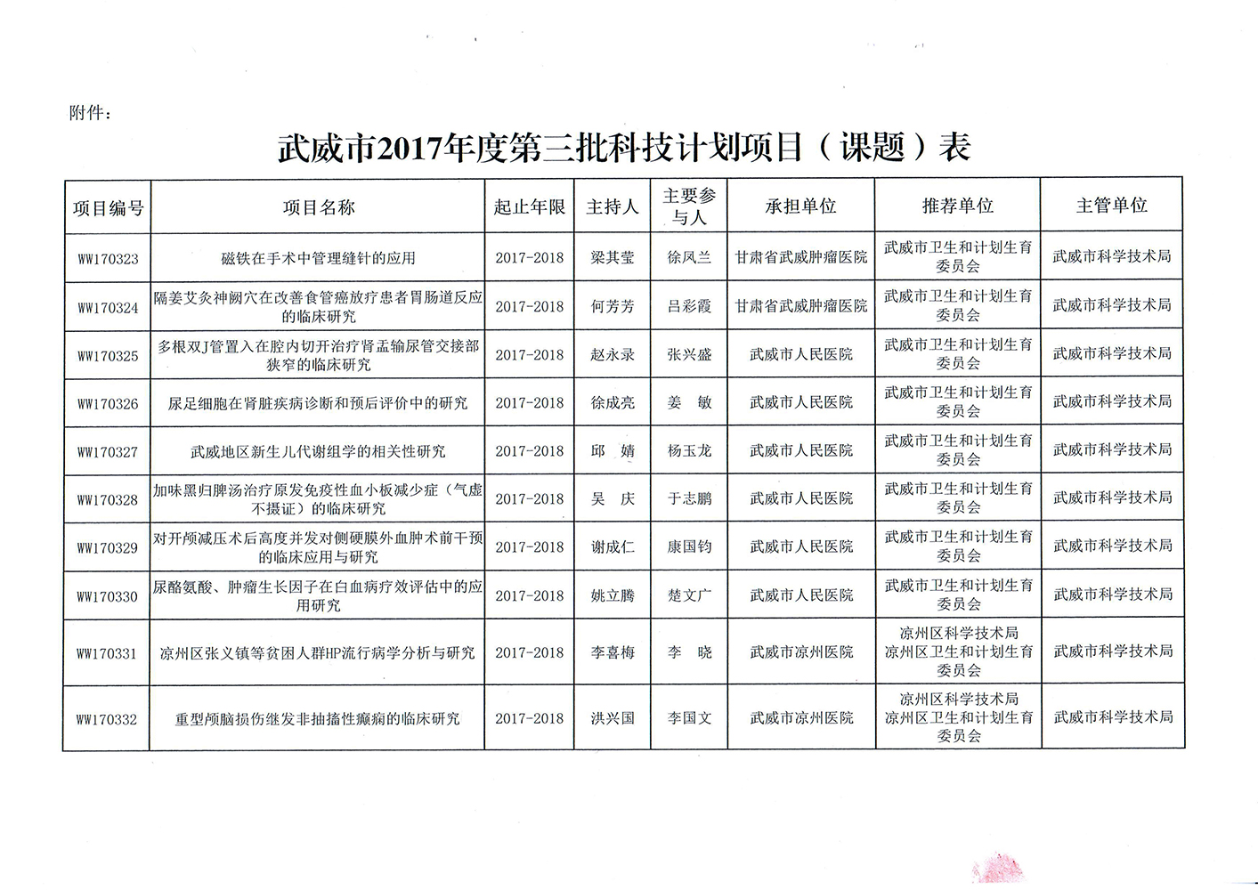 轉(zhuǎn)發(fā)武威市科學(xué)技術(shù)局關(guān)于下達武威市2017年度第三批市列科技計劃項目的通知