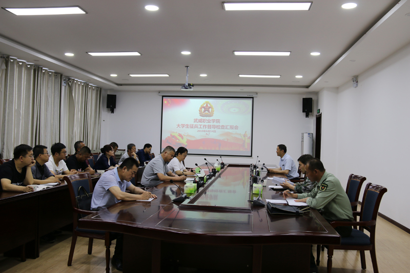 6月14日上午,由武威軍分區(qū)副司令員丁全綱帶隊,市教育局督學(xué)張應(yīng)偉、涼州區(qū)人武部政委丁俊強、涼州區(qū)人武部副部長韓小偉、涼州區(qū)西關(guān)街武裝部部長趙光慶一行5人到我院督導(dǎo)檢查征兵工作,學(xué)院副院長田迎春、學(xué)工處處長王守云陪同檢查。各系黨總支書記、輔導(dǎo)員參加了匯報會,田迎春主持會議。
