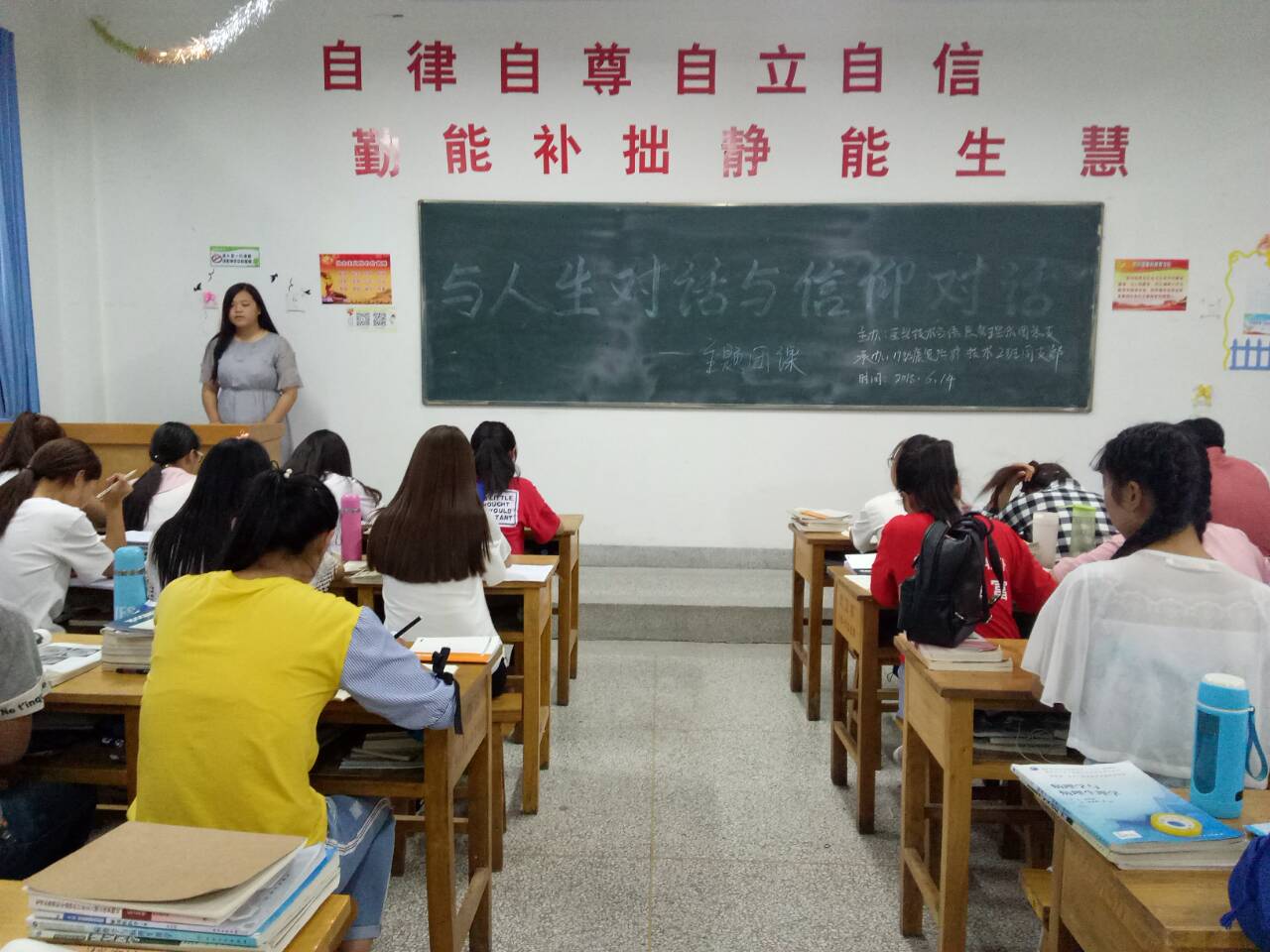 為了引導(dǎo)青年學(xué)生提高思想道德修養(yǎng),找準(zhǔn)人生方向和成長道路,培育和踐行社會主義核心價值觀,醫(yī)學(xué)技術(shù)與信息管理系于2018年6月14日在各班教室進(jìn)行了“與人生對話與信仰對話”的主題團(tuán)課,旨在提高同學(xué)們的政治素養(yǎng),進(jìn)一步濃郁班級文化氛圍、激發(fā)同學(xué)們讀書求知的熱情。
