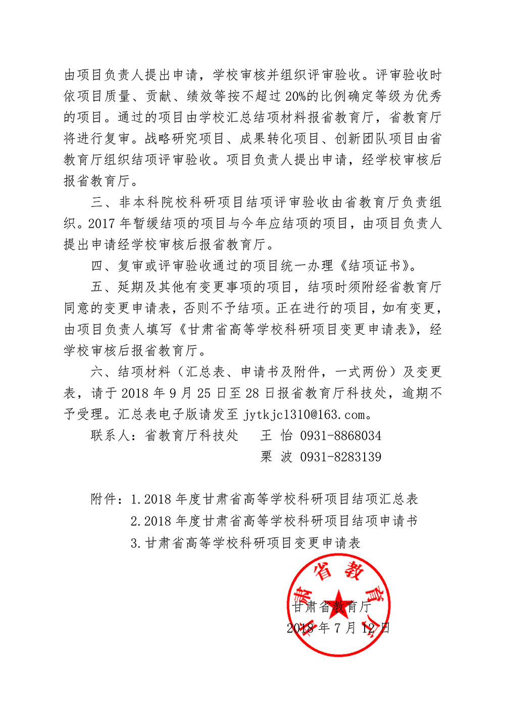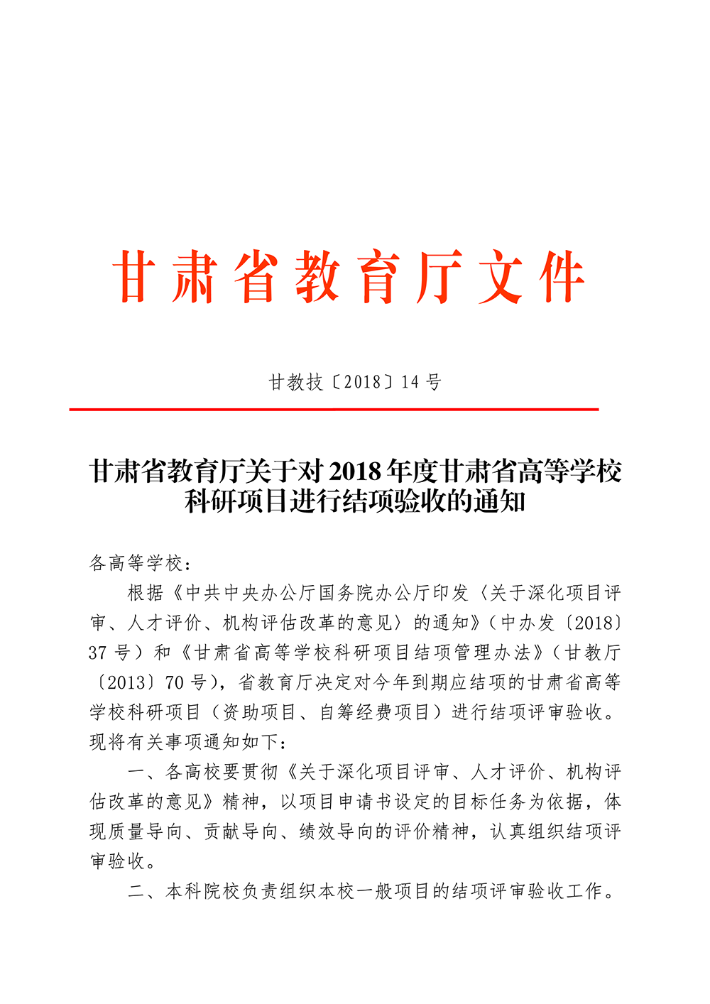 轉(zhuǎn)發(fā)甘肅省教育廳關(guān)于對(duì)2018年度甘肅省高等學(xué)校科研項(xiàng)目進(jìn)行結(jié)項(xiàng)驗(yàn)收的通知