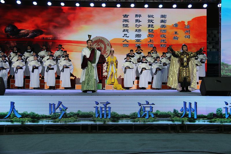 9月9日,來自全市三縣一區(qū)、市直機關(guān)、市老干局、市工商聯(lián)、市直教育系統(tǒng)選拔出的23個吟誦涼州詞節(jié)目齊聚武威市體育館,上演了“車馬相交錯,歌吹日縱橫”的涼州遺韻。學(xué)院推送的節(jié)目《金戈鐵馬入夢涼州》在決賽中成績位列第四,榮獲一等獎,并被市文廣局選送參加第二屆涼州文化論壇暨中國?河西走廊第八屆有機葡萄美酒節(jié)文藝展演。