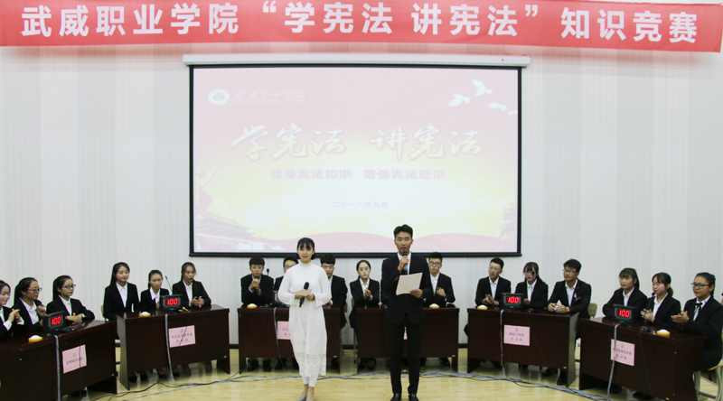 9月12日晚,院學(xué)生會在正德廳舉辦“學(xué)憲法、講憲法”知識競賽,組織人事處副處長魏全民、宣傳統(tǒng)戰(zhàn)部副部長史子新、院團(tuán)委副書記高鵬堂及200多名學(xué)生代表觀看了比賽。