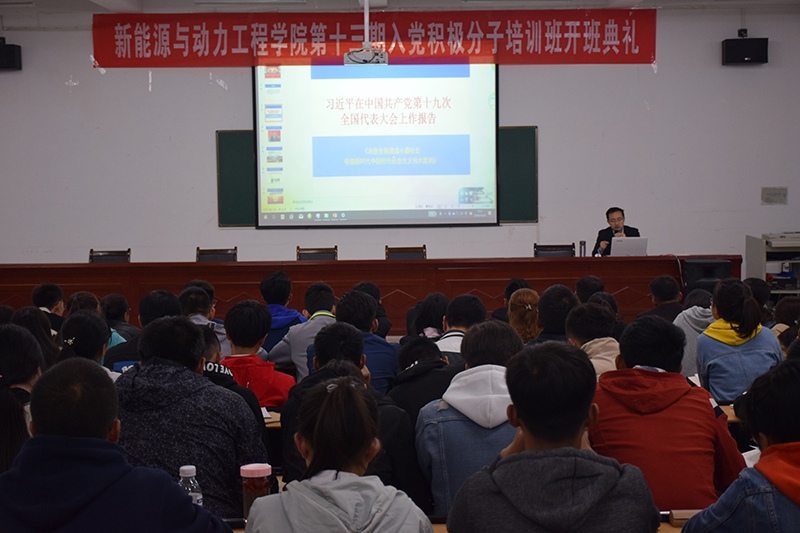 10月14日晚,新能源學院辦公室黨支部書記任陶在明德樓001教室作學習黨的十九大精神主題報告,98名入黨積極分子和45名發(fā)展對象認真聆聽了此次報告。