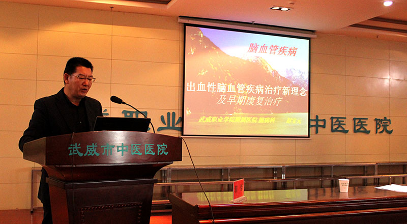 為提高醫(yī)務(wù)人員對(duì)于腦病(腦卒中)的診療和康復(fù)訓(xùn)練水平,推進(jìn)醫(yī)院腦卒中中心的籌備建設(shè),學(xué)院附屬醫(yī)院于11月11日上午,在內(nèi)科七樓會(huì)議室舉辦甘肅省中醫(yī)藥繼續(xù)醫(yī)學(xué)教育項(xiàng)目:腦病診療康復(fù)培訓(xùn)班。醫(yī)院副院長宗武山主持培訓(xùn)班開班儀式,副院長毛照海致辭歡迎蘭大二院2位神經(jīng)內(nèi)科專家講學(xué)指導(dǎo)工作。醫(yī)院各科室二百余名醫(yī)療骨干參加腦病診療康復(fù)培訓(xùn)班,聆聽學(xué)術(shù)報(bào)告。