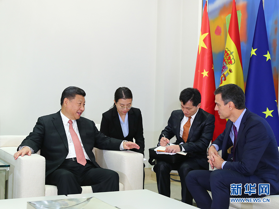 習近平強調(diào),雙方要加強高層交往對兩國關系發(fā)展的政治引領,密切政府部門和立法機構交往合作,深化政治互信,繼續(xù)在涉及彼此核心利益和重大關切問題上相互理解、相互支持,推動兩國關系行穩(wěn)致遠。中西開展“一帶一路”合作具有歷史、地理等多重優(yōu)勢,要加強“一帶一路”倡議同西班牙亞洲戰(zhàn)略、地中海走廊建設等對接,促進經(jīng)貿(mào)往來,拓展港口、航運、航空、新能源汽車、金融等領域合作,優(yōu)化科技、創(chuàng)新合作。雙方要深化人文交流,加強文化、地方、旅游、新聞、醫(yī)療、文化遺產(chǎn)保護、體育等領域交流合作。中國愿同西班牙繼續(xù)就完善全球治理、應對氣候變化等國際和地區(qū)熱點問題保持溝通和協(xié)調(diào)。