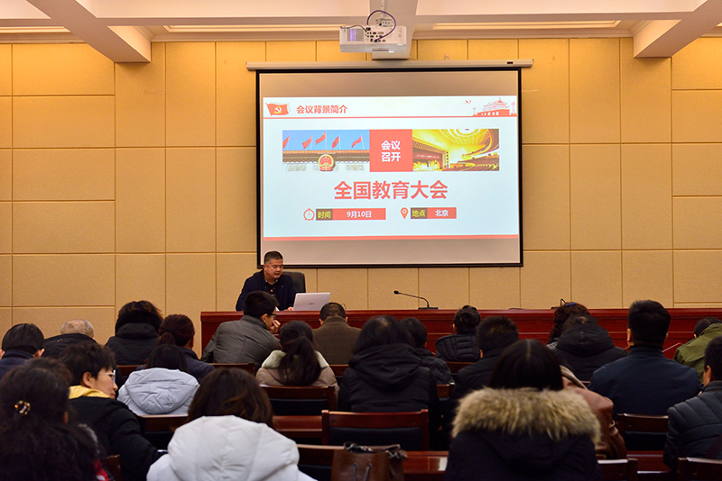 學(xué)工處處長王守云主講。他以“學(xué)為人師 行為世范 爭做‘四有’老師”為題學(xué)習(xí)了全國教育大會(huì)召開的背景、重大意義以及習(xí)近平總書記關(guān)于教育的重要論述。宣講會(huì)指出,全國教育大會(huì)是黨中央在中國特色社會(huì)主義進(jìn)入新時(shí)代、全面建成小康社會(huì)進(jìn)入決勝階段召開的一次劃時(shí)代、歷史性會(huì)議,時(shí)機(jī)好、規(guī)格高、影響大,在我國教育發(fā)展史上具有重要里程碑意義;習(xí)近平總書記深刻總結(jié)了黨的十八大以來我國教育事業(yè)發(fā)展取得的顯著成就,對(duì)當(dāng)前和今后一個(gè)時(shí)期教育工作作出重大部署,為加快推進(jìn)教育現(xiàn)代化、建設(shè)教育強(qiáng)國、辦好人民滿意的教育指明了前進(jìn)方向、提供了根本遵循。