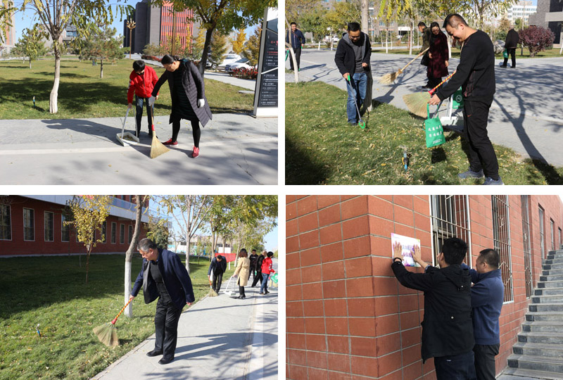 支部全體黨員在大學(xué)生活動(dòng)中心門口、風(fēng)雨操場及校園馬路清掃落葉和垃圾,并對沿線衛(wèi)生死角進(jìn)行清理,對不文明行為進(jìn)行即時(shí)勸導(dǎo)。在教學(xué)樓、活動(dòng)中心、公寓樓、食堂等建筑物的醒目位置張貼20余張“創(chuàng)建文明校園”、“禁止吸煙”等標(biāo)志。通過開展“創(chuàng)建文明校園”活動(dòng),進(jìn)一步提升我院“創(chuàng)建文明城市”迎檢和“創(chuàng)建文明校園”活動(dòng)效果。