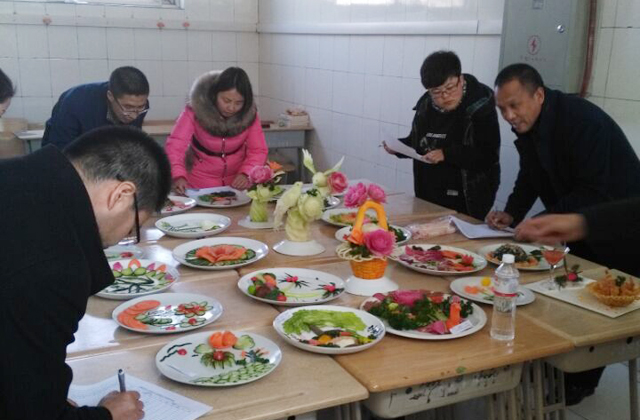 上午9:00—11:00中級烹調(diào)師理論考試在尚德樓115教室舉行,本次考試嚴格遵照人社局相關(guān)考試流程和要求,考試現(xiàn)場同學(xué)們沉著冷靜答題,沒有出現(xiàn)考生違規(guī)違紀現(xiàn)象。下午15:00—17:00實踐操作考試在經(jīng)濟管理系烹飪實訓(xùn)中心進行,從食品雕刻、冷菜拼盤、熱菜制作三個方面全面考核了考生的烹飪技能。經(jīng)過同學(xué)們刻苦的訓(xùn)練和充分的考前準備,在實操考核階段同學(xué)們都顯得信心十足。第一環(huán)節(jié)結(jié)束后,一道道精美的冷菜拼盤呈現(xiàn)在大家眼前,表現(xiàn)出同學(xué)們精湛的刀工和構(gòu)圖能力,第二環(huán)節(jié)是熱菜部分,同學(xué)們調(diào)味準確、火候到位、裝盤得當,充分展現(xiàn)了同學(xué)們嫻熟的烹飪技能。