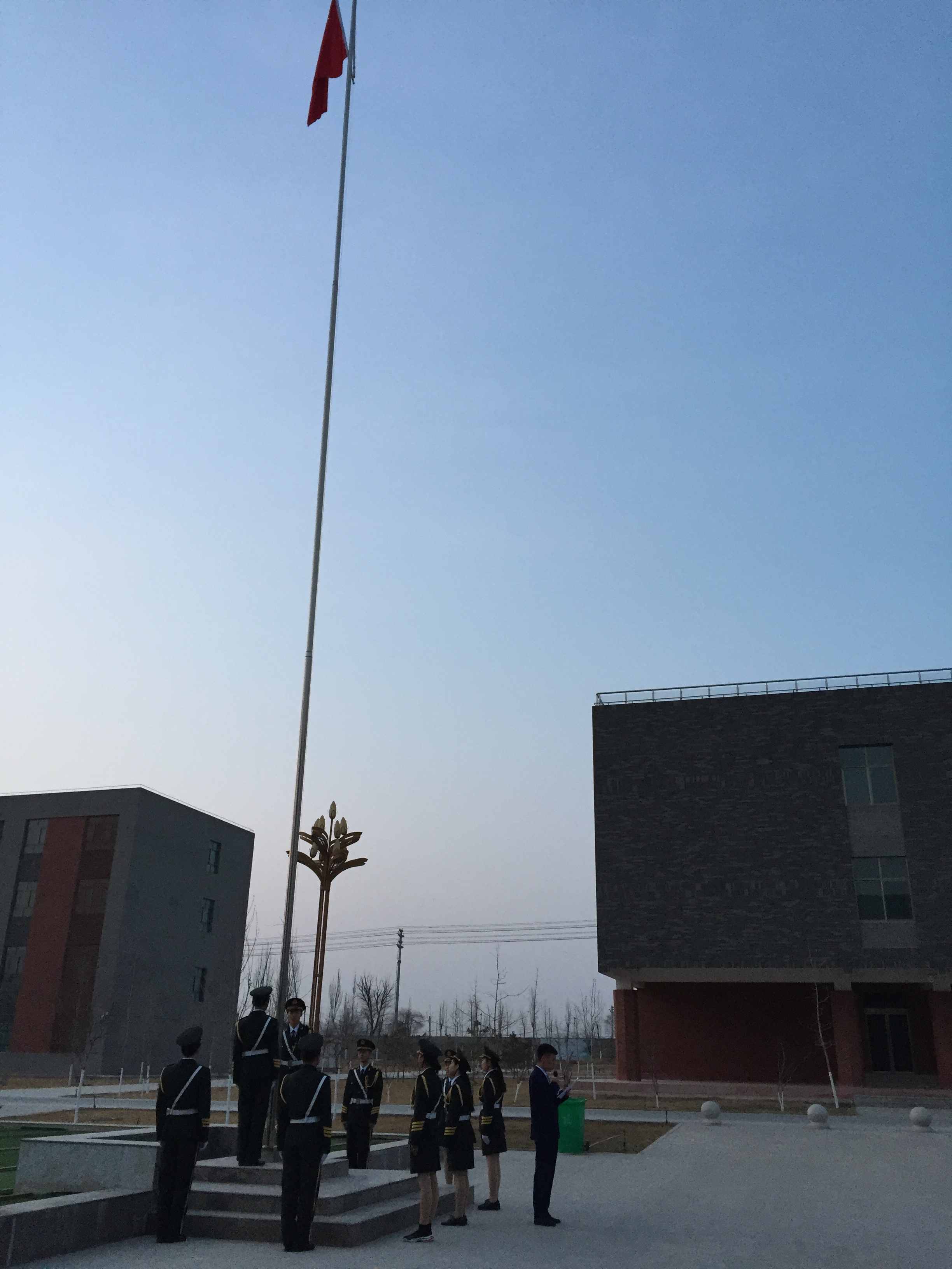 3月5日早7點(diǎn)20分,汽車(chē)工程系全體師生共442人齊集學(xué)院圖書(shū)館升旗廣場(chǎng),伴著《義勇軍進(jìn)行曲》的響起,旗手奮力揚(yáng)起五星紅旗,鮮艷的五星紅旗在國(guó)歌聲中冉冉升起,全體在場(chǎng)師生行注目禮,仰望著迎風(fēng)飄揚(yáng)的國(guó)旗,場(chǎng)面莊嚴(yán)肅穆。