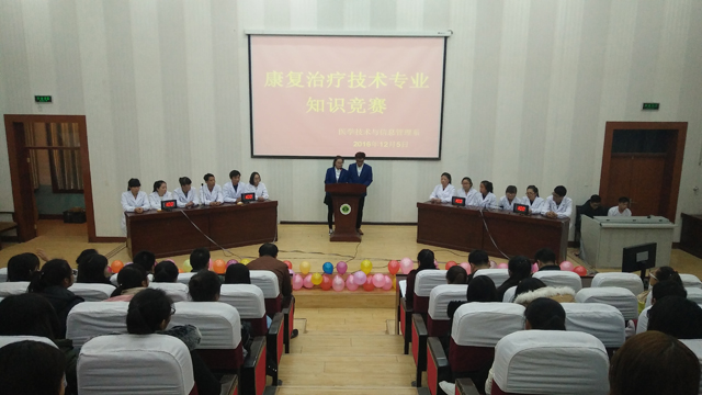 為加強學(xué)風(fēng)建設(shè),鞏固特色專業(yè)建設(shè)成果,增強同學(xué)們對專業(yè)知識的了解,培養(yǎng)同學(xué)們的思維能力、創(chuàng)新能力,提高學(xué)生的競爭力,12月5日晚,醫(yī)學(xué)技術(shù)與信息管理系在尚德樓正德廳舉行康復(fù)治療技術(shù)專業(yè)知識競賽。學(xué)院基建處處長周興全,系主任楊如松,學(xué)生工作負(fù)責(zé)人魏曙光,院團委馬琪老師,系政治輔導(dǎo)員,康復(fù)治療技術(shù)專業(yè)教研室主任、任課教師及全體班主任、學(xué)生代表參加本次活動。