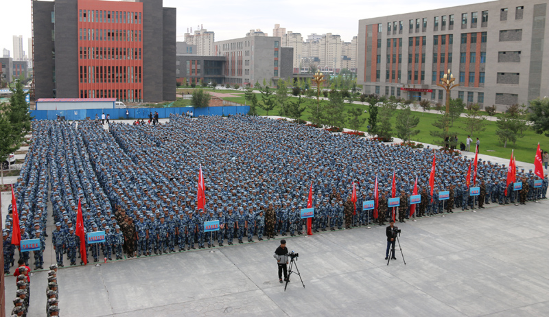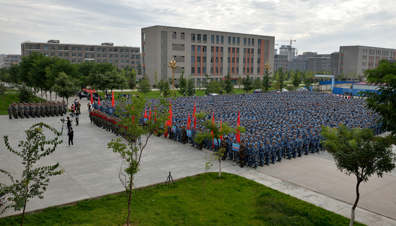 大會現場,田迎春向承訓單位授予軍訓團旗。大會在雄壯的《中國人民解放軍軍歌》聲中拉開了軍訓序幕。