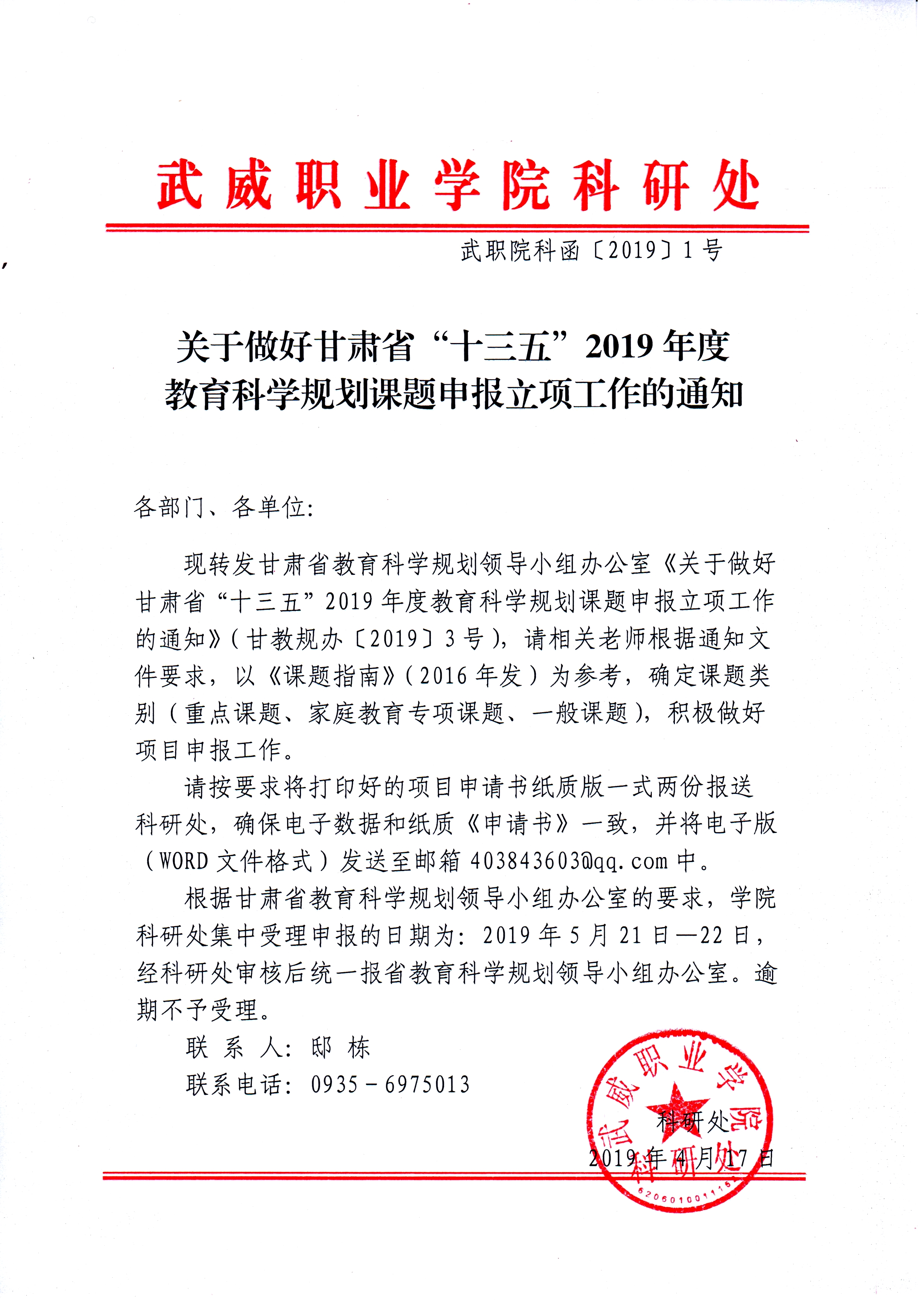關(guān)于做好甘肅省“十三五”2019年度教育科學(xué)規(guī)劃課題申報立項工作的通知