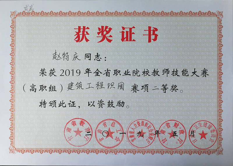 我院建筑工程系教師在“2019年甘肅省職業(yè)院校教師技能大賽”中再創(chuàng)佳績