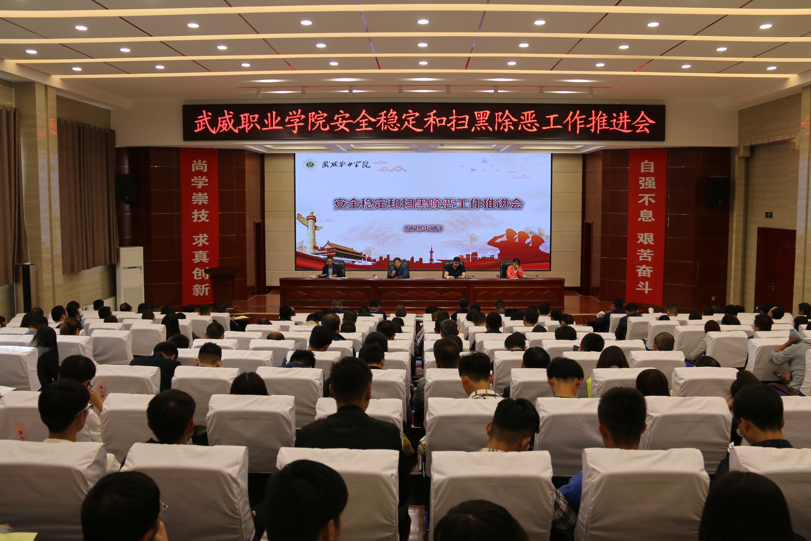 5月27日下午,學(xué)院安全穩(wěn)定和掃黑除惡工作推進(jìn)會(huì)在大學(xué)生活動(dòng)中心菁英廳召開,黨委書記、院長(zhǎng)趙明、紀(jì)委書記張富國(guó)、副院長(zhǎng)王永緒、田迎春出席會(huì)議,各部門、單位負(fù)責(zé)人、安全信息員、各院系輔導(dǎo)員、班主任、團(tuán)學(xué)干部參加了會(huì)議。會(huì)議由趙明主持。