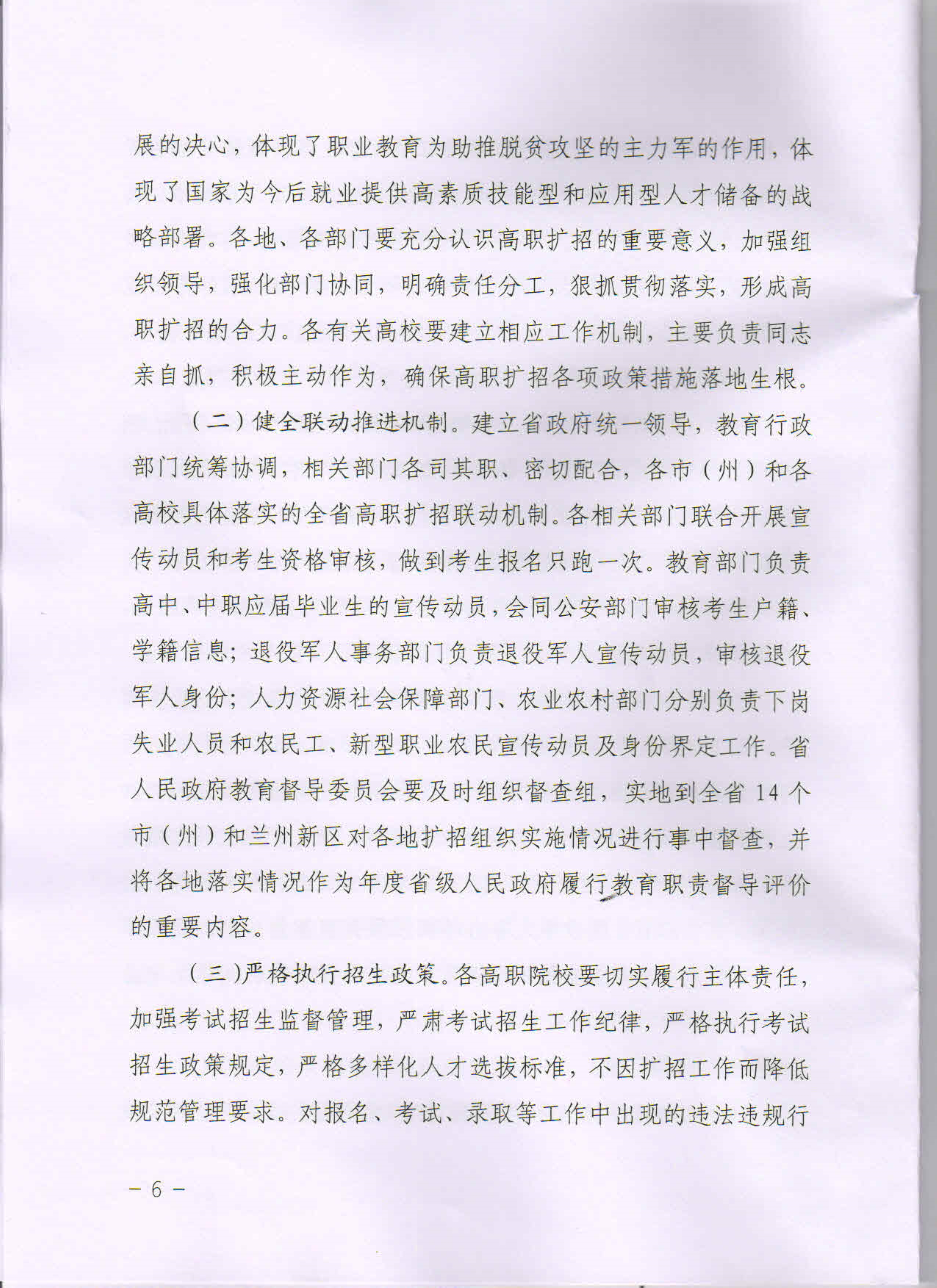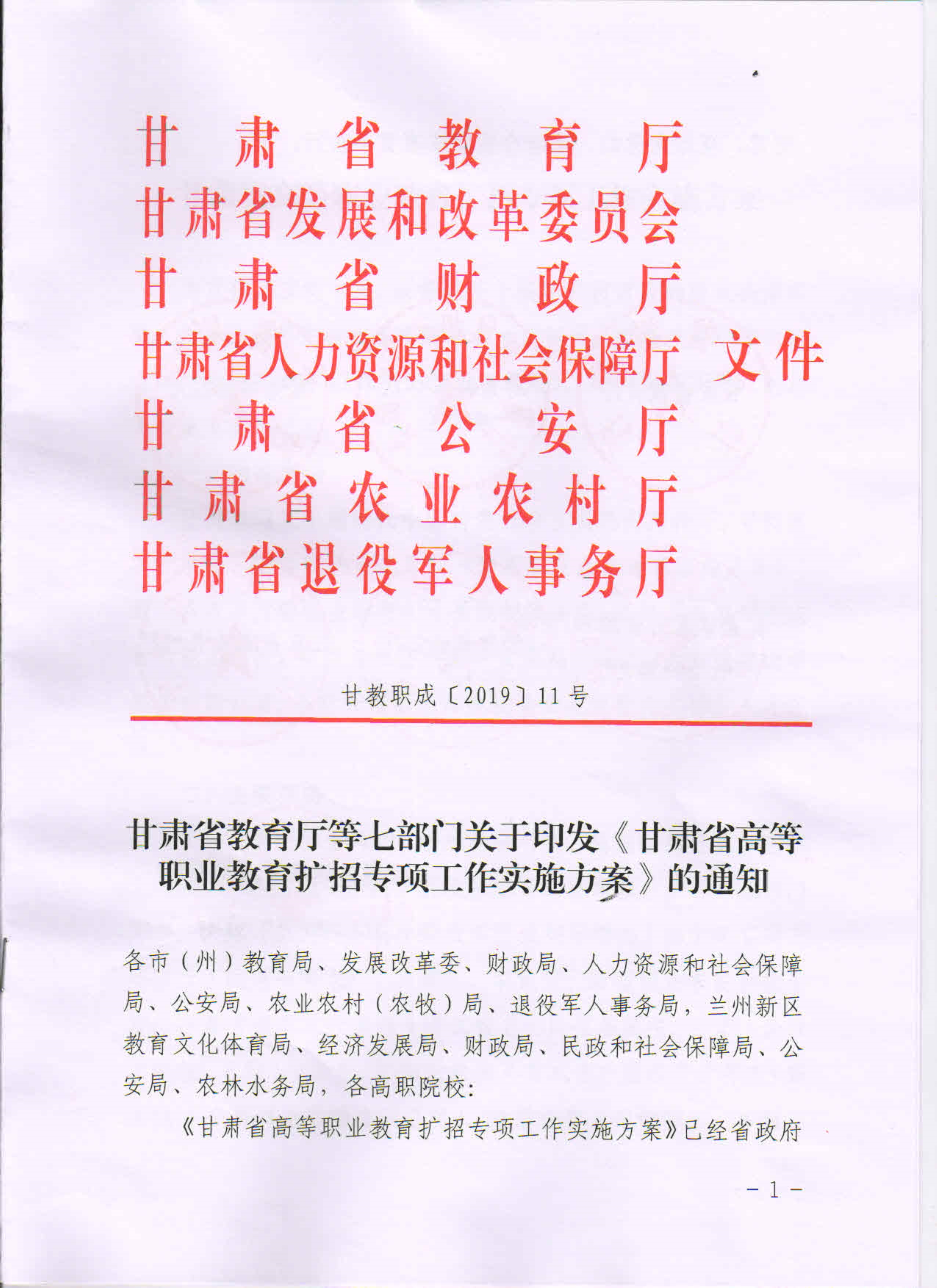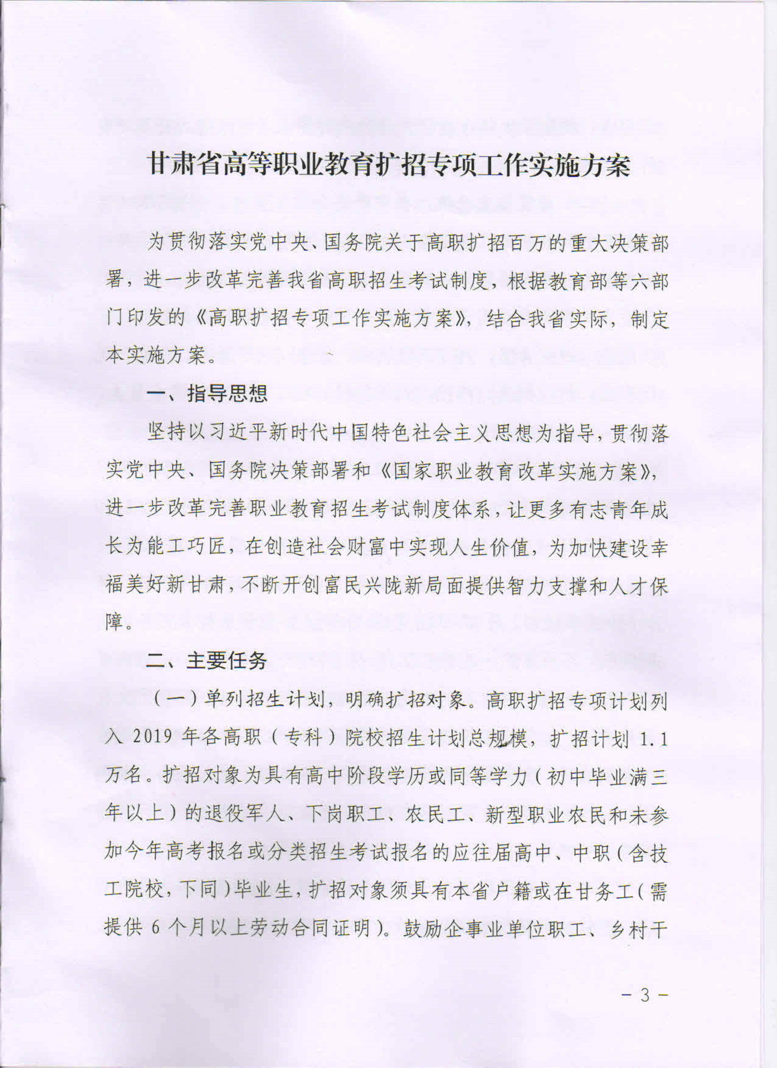 甘肅省高等職業(yè)教育擴(kuò)招專(zhuān)項(xiàng)工作實(shí)施方案