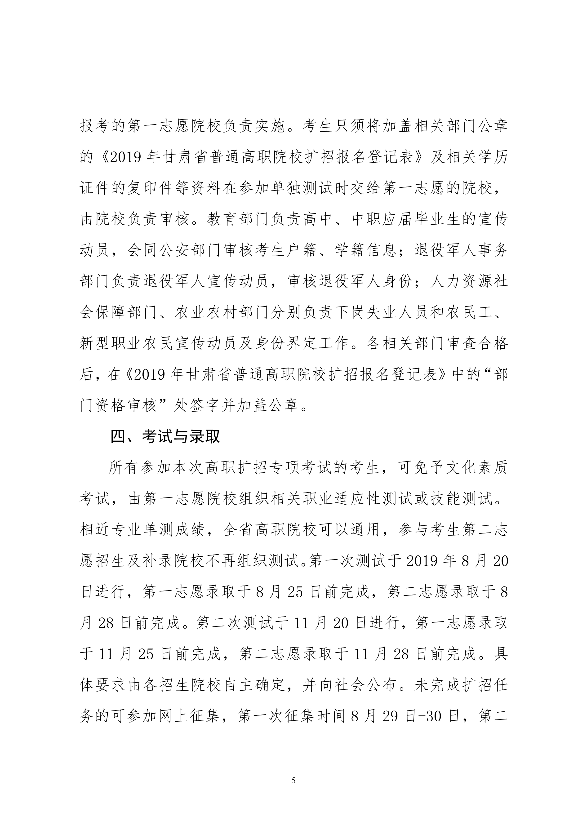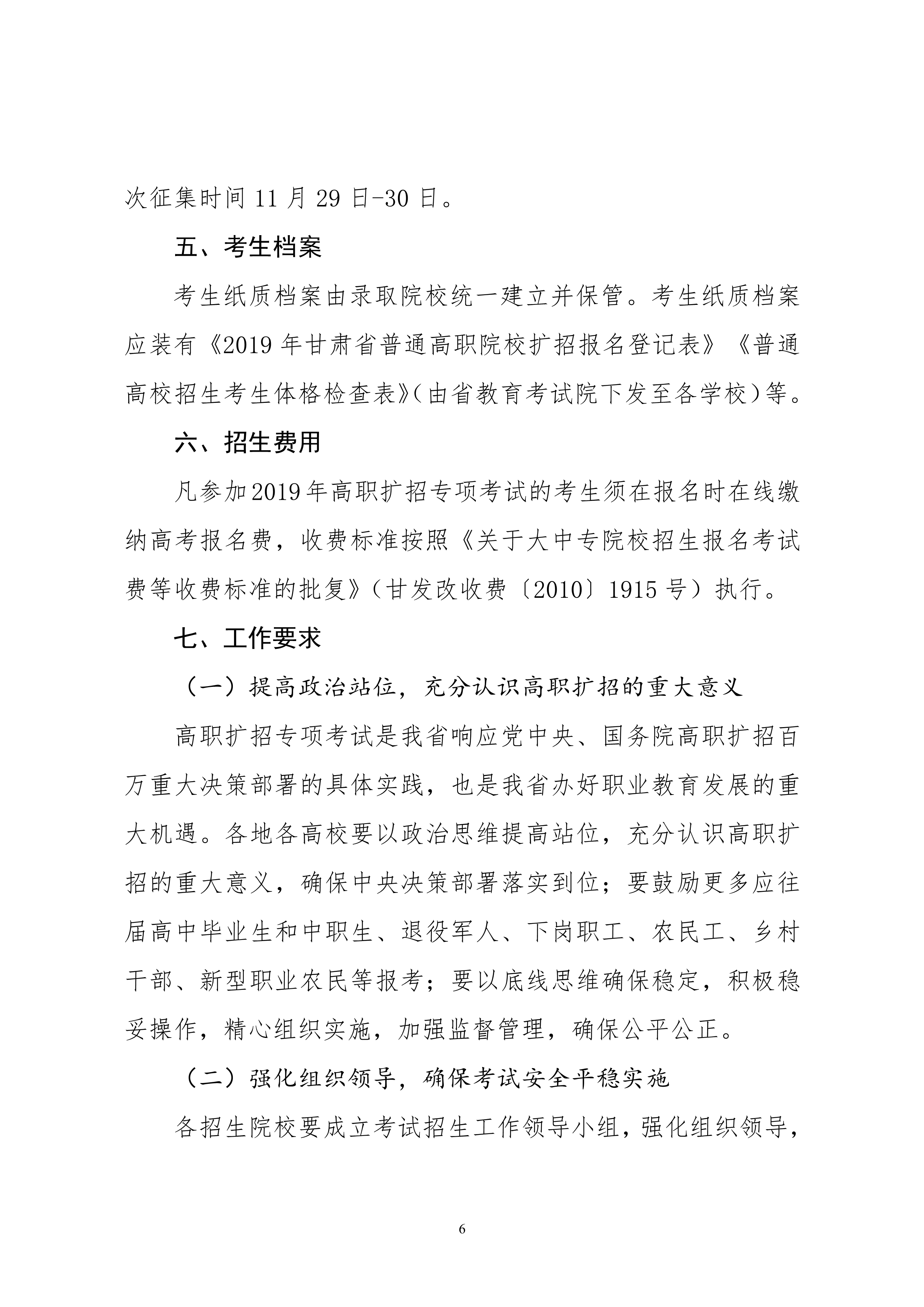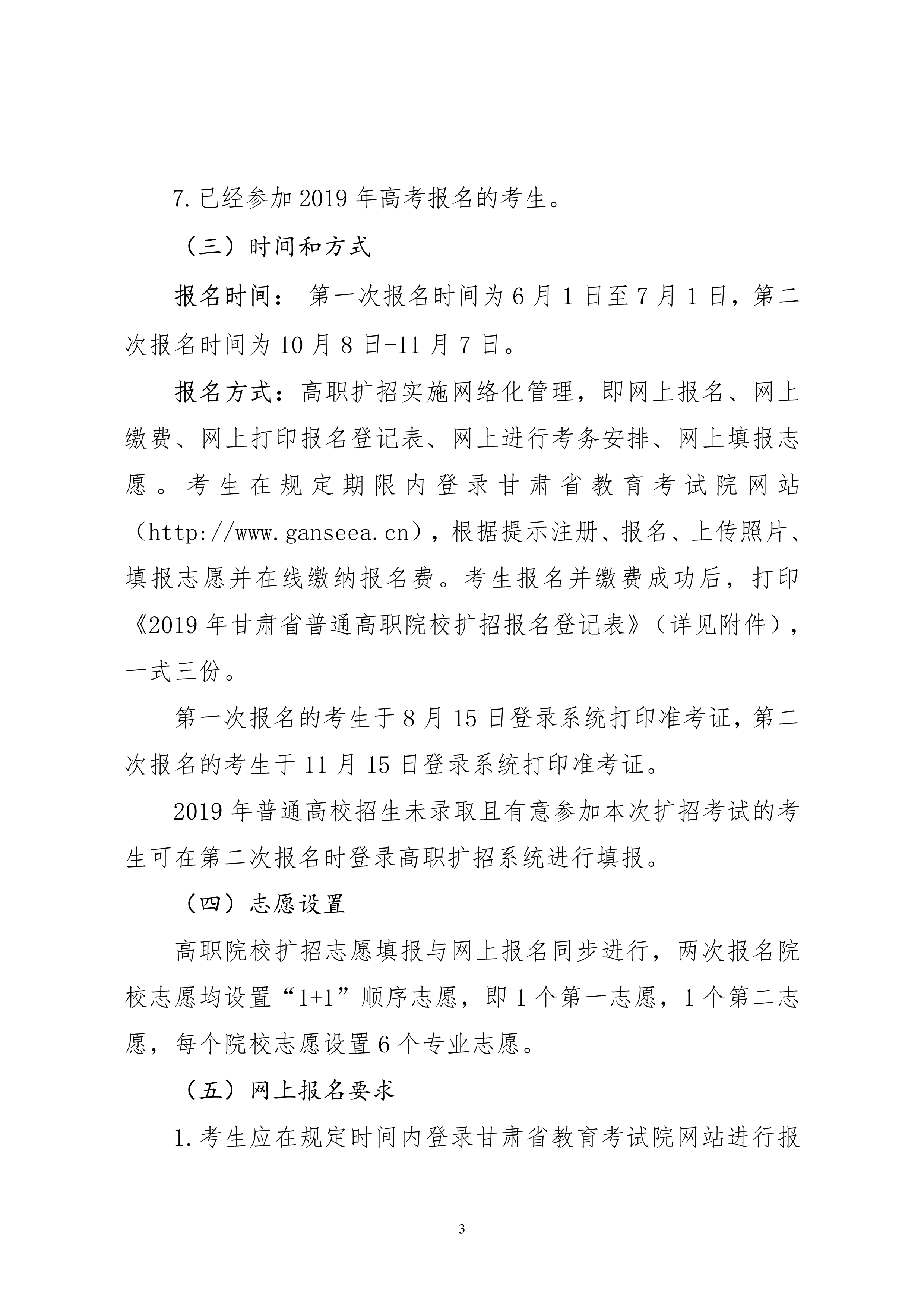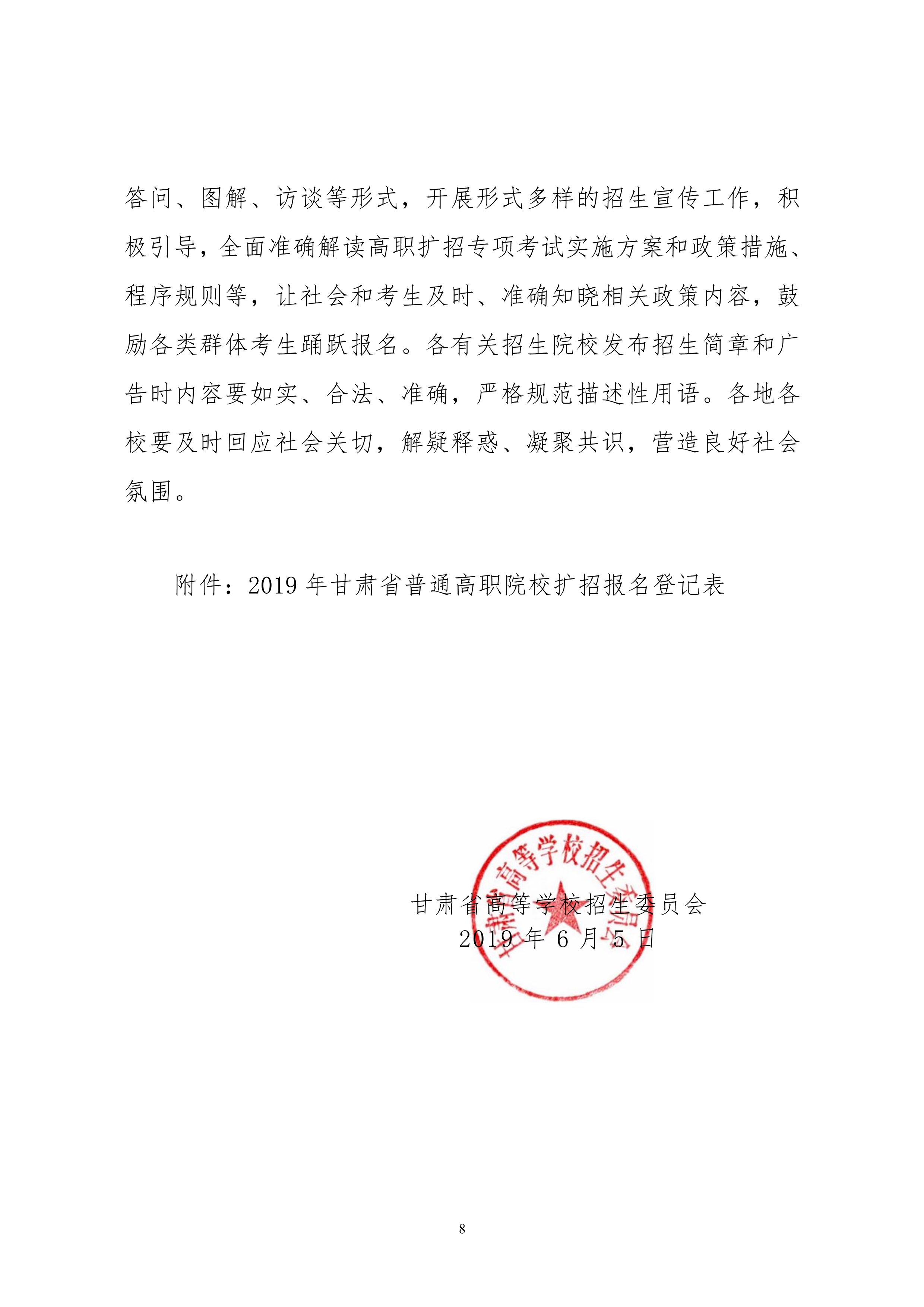 19年關(guān)于做好2019年甘肅省高等職業(yè)教育擴(kuò)招專項(xiàng)考試招生工作的通知