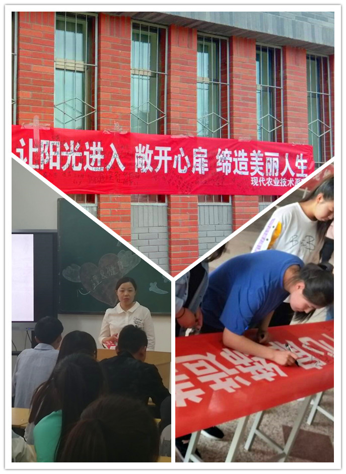邀請現(xiàn)代農業(yè)技術系張曉燕老師做了題為《預見未知的自己》的講座;系團學會組織學生參加“打開心靈的窗戶,讓陽光進入;敞開心扉,締造美麗人生?!敝黝}簽名活動。各班召開心理健康主題班會、開展心理游戲和手抄報活動。