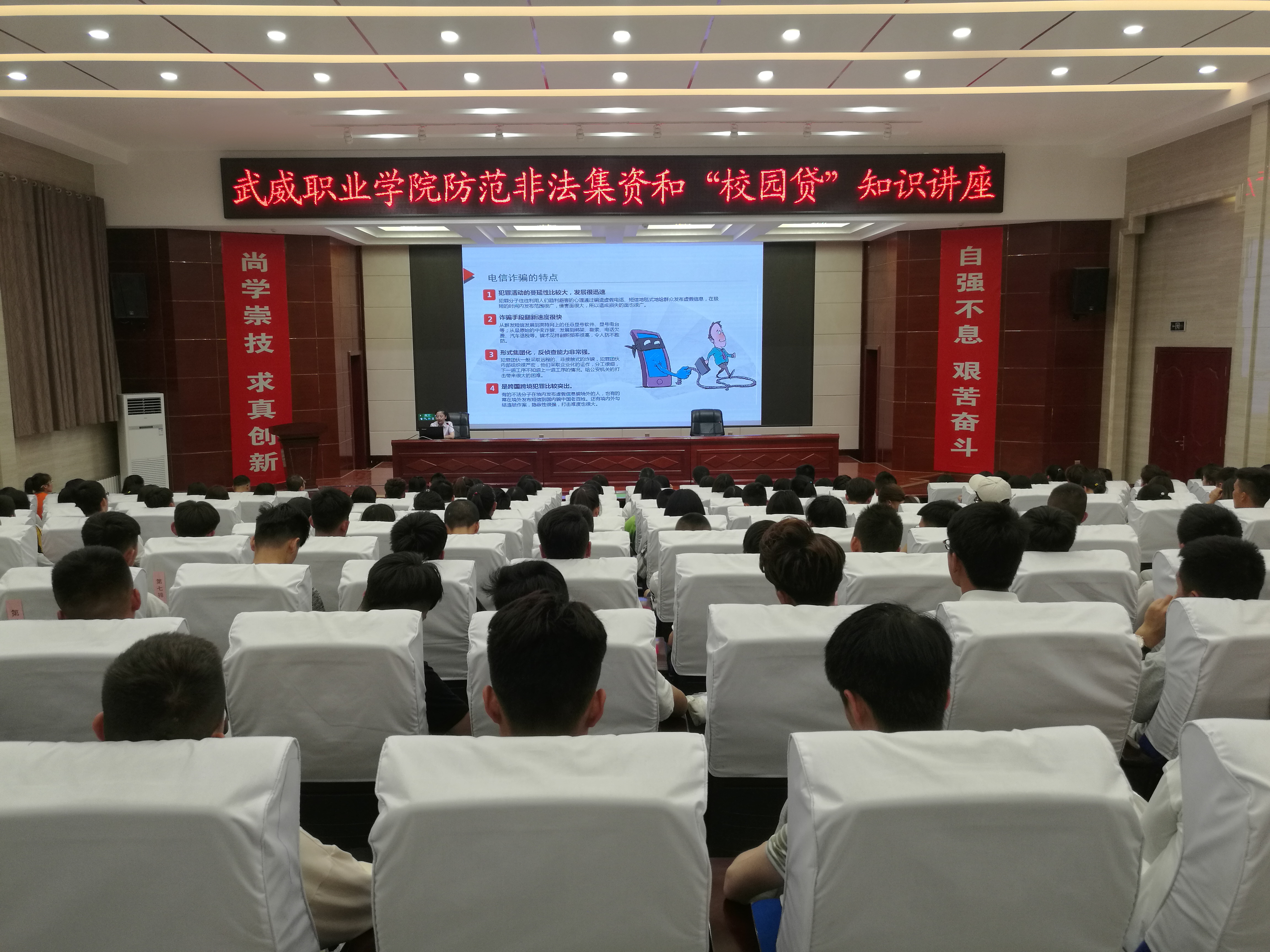 為深入貫徹落實(shí)甘肅省2019年防范非法集資和金融領(lǐng)域掃黑除惡宣傳月活動(dòng)的有關(guān)精神,保護(hù)廣大師生的合法權(quán)益。6月9日晚,學(xué)院邀請(qǐng)中國(guó)農(nóng)業(yè)銀行武威支行風(fēng)險(xiǎn)管理部工作人員朱琳在學(xué)院菁英廳作了關(guān)于防范非法集資和校園貸知識(shí)講座,學(xué)院副院長(zhǎng)王永緒出席活動(dòng),保衛(wèi)處、計(jì)劃財(cái)務(wù)處負(fù)責(zé)同志及各系師生代表200余人聆聽了講座。
