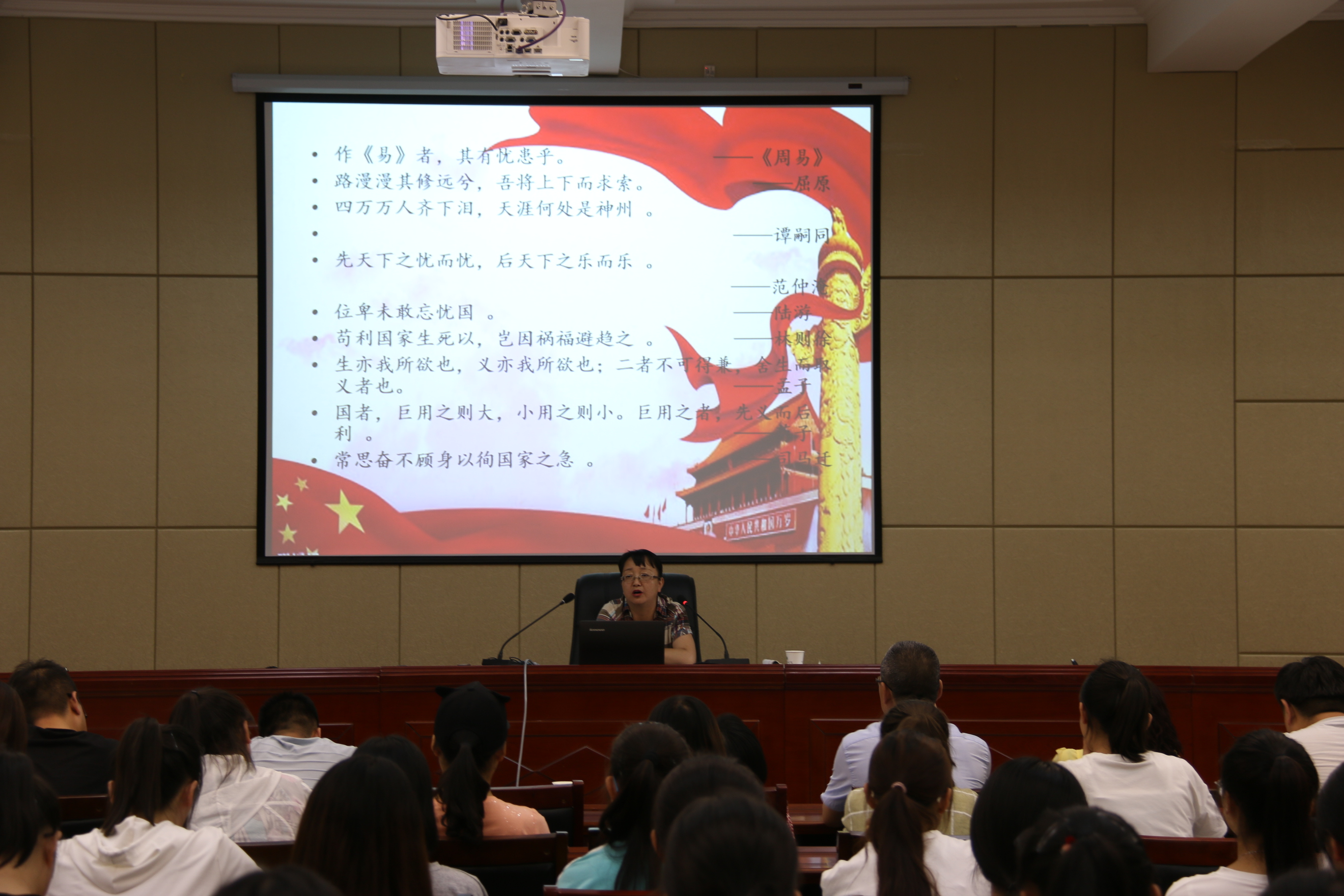 7月3日下午,學(xué)院黨委委員、副院長田迎春在行樹樓北側(cè)會議室為醫(yī)學(xué)技術(shù)學(xué)院、藥學(xué)系的全體黨員、預(yù)備黨員、入黨積極分子和其聯(lián)系班級、宿舍、社團(tuán)學(xué)生共計140余人作了題為《溯源 求理 踐行——愛國主義精神傳承與弘揚(yáng)》的黨課。