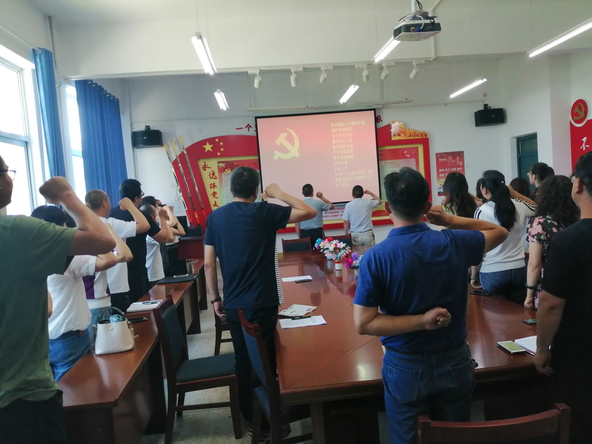 黨總支書記胡靜峰宣讀了中國共產黨預備黨員名單。在胡靜峰同志帶領下預備黨員面向黨旗進行了入黨宣誓,其他黨員重溫了入黨誓詞。預備黨員劉心代表預備黨員進行了表態(tài)發(fā)言。