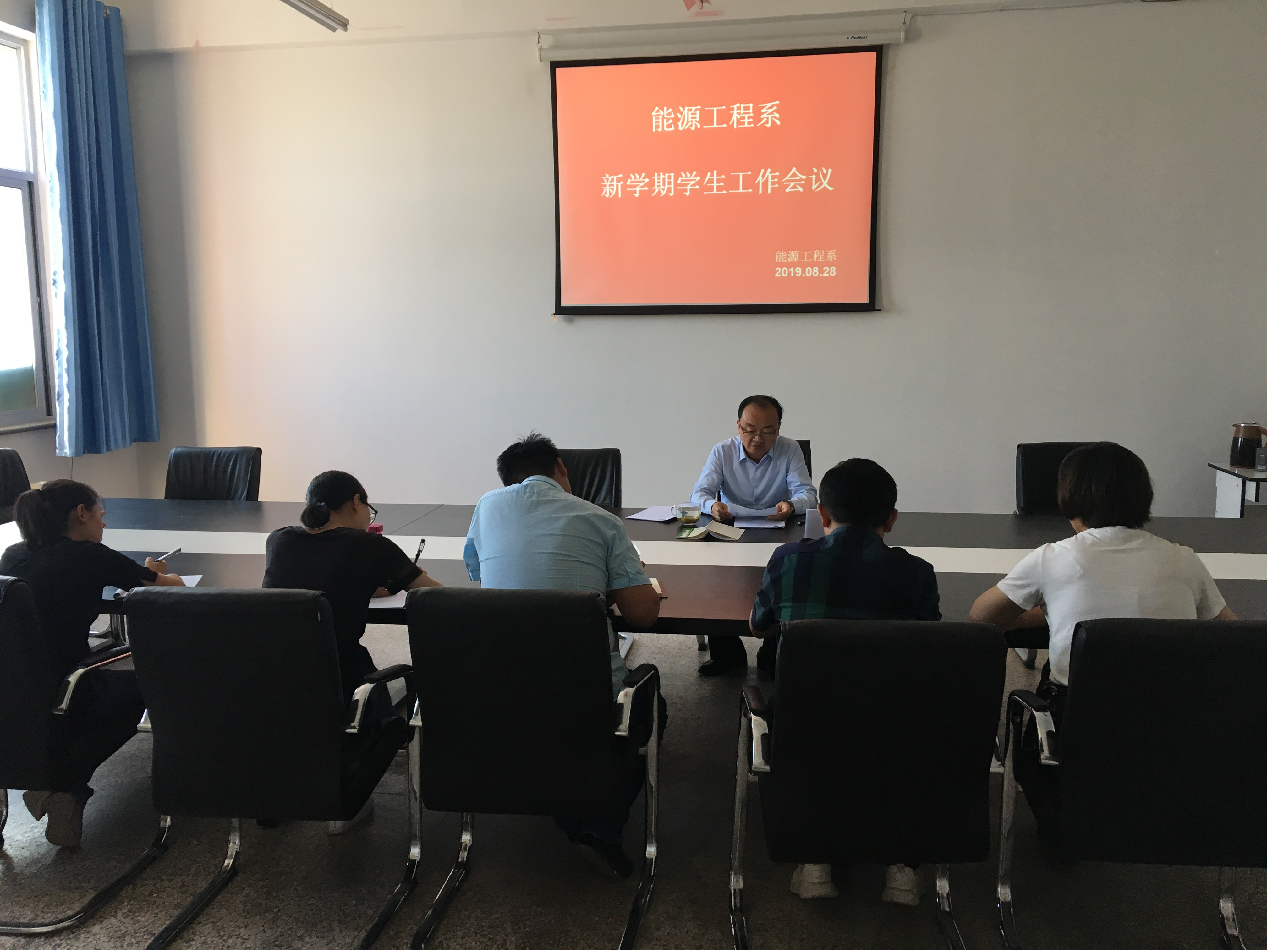 8月28日,能源工程系黨總支書記黃文源主持召開新學期學生工作會議,安排部署本學期學生工作和新生報到工作,全體輔導員、班主任參加了會議。