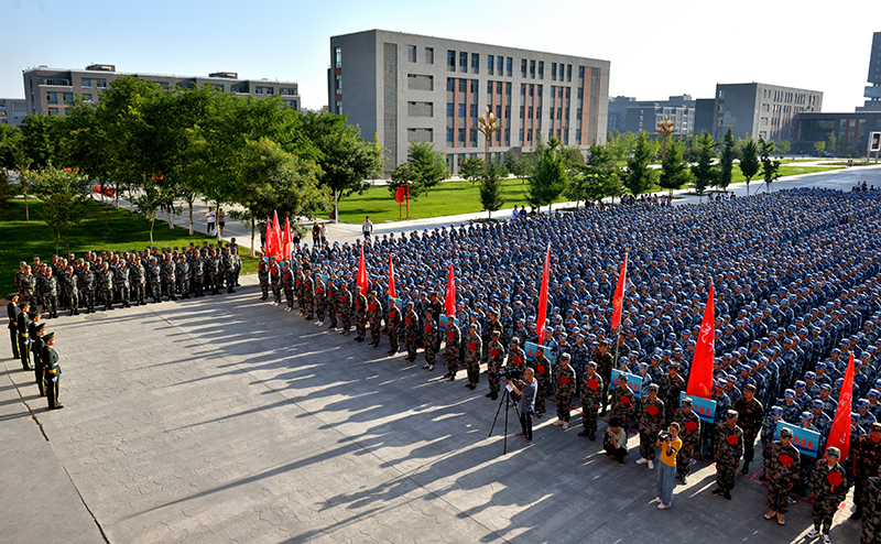 9月4日上午,學院2019級新生軍訓動員大會暨大學生應征入伍歡送儀式在大學生活動中心廣場舉行。學院黨委書記、院長趙明出席并向軍訓團授旗,黨委副書記翟存祥寄語全體新生,院領導張富國、王永緒、田迎春、何毅、張開禮及31666部隊營長李明出席,承訓單位55名教官,學院各系黨總支書記、輔導員、新生班班主任,2019年參軍入伍的28名大學生、2019級4157名學生參加了大會。大會由副院長王守云主持。