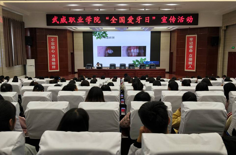 學(xué)院婦聯(lián)邀請(qǐng)武威腫瘤醫(yī)院口腔科主任韓冬做題為《青年口腔保健知識(shí)》的講座。韓冬結(jié)合多年口腔疾病診療經(jīng)驗(yàn),從青年口腔衛(wèi)生、口腔疾病預(yù)防及口腔正畸處理等方面入手,做了精彩講解,借助牙齒道具展示了正確的刷牙方法,并對(duì)同學(xué)們的各類口腔問題作了解答。講座結(jié)束后,武威腫瘤醫(yī)院和愛牙協(xié)會(huì)在大學(xué)生活動(dòng)中心前廣場(chǎng)為同學(xué)們開展義診活動(dòng),發(fā)放口腔健康宣傳資料600余份。