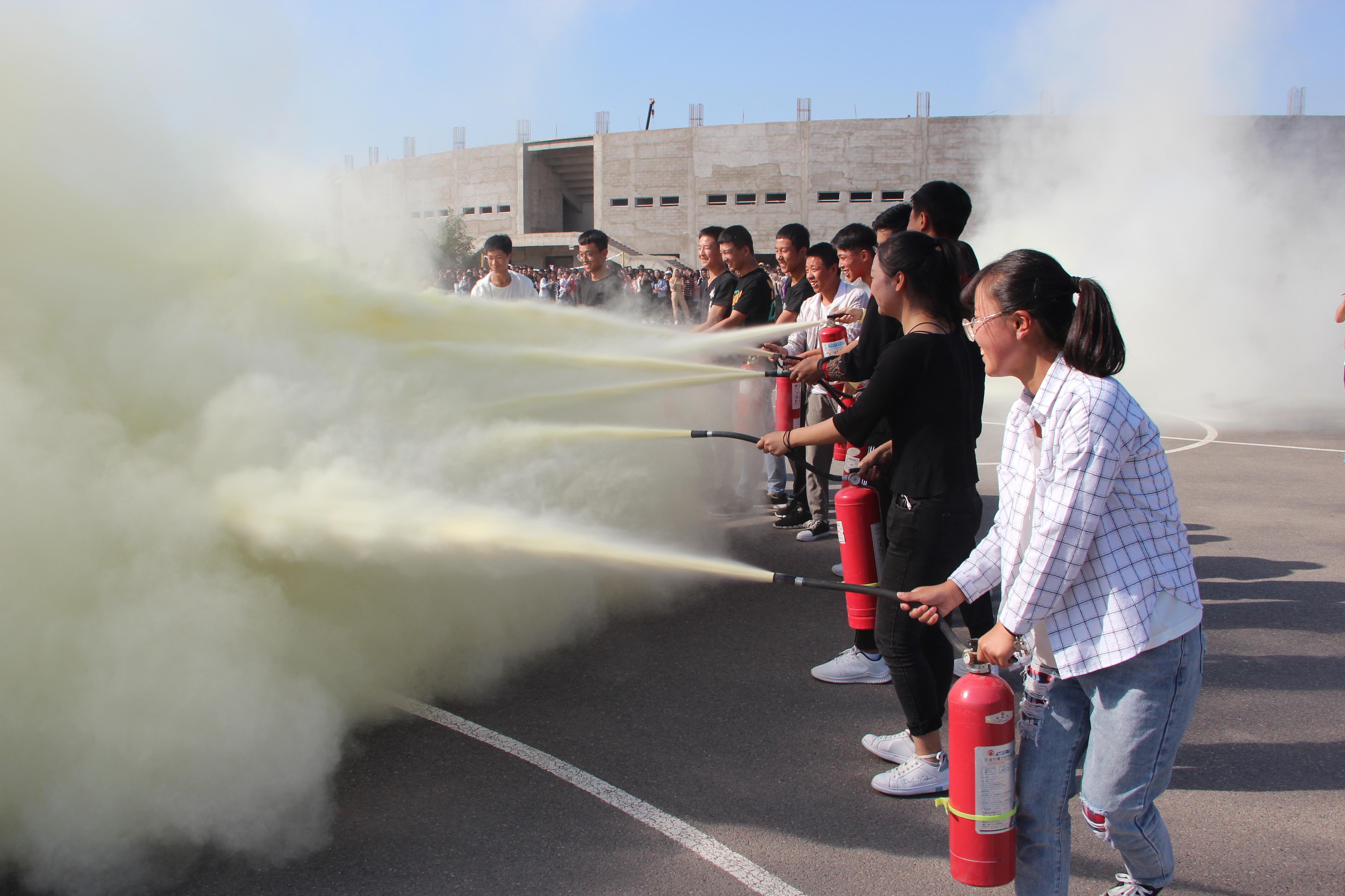 隨后,2019級(jí)新生整隊(duì)到操場(chǎng)參加了滅火演練。在消防隊(duì)員的講解和示范下,同學(xué)們現(xiàn)場(chǎng)學(xué)習(xí)了應(yīng)急逃生和消防安全常識(shí),部分師生代表、食堂工作人員親身體驗(yàn)了處置滅火器著火液化氣瓶、干粉滅火、通過模擬煙室逃生等操作。
