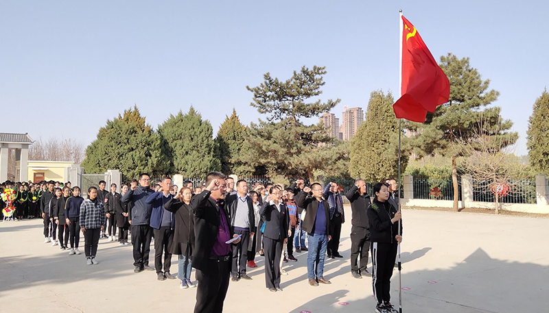 緬懷儀式上,大家肅立默哀,向長眠于此的革命先烈鞠躬、敬獻花籃,表達對革命先烈哀思和崇高敬意,全體黨員在革命烈士墓前面向黨旗重溫了入黨誓詞,護理系教師黨支部書記韓曉萍在講話中指出戰(zhàn)爭年代造就了烈士們的堅強與勇敢,和平年代的美好環(huán)境為我們提供了努力工作,奮發(fā)創(chuàng)業(yè)的機會。我們要嚴格按照學院黨委的要求,全面貫徹落實習近平新時代中國特色社會主義思想,增強“四個意識”、堅定“四個自信”、做到“兩個維護”。同時希望同學們努力學習,踐行社會主義核心價值觀,成為德智體美勞全面發(fā)展的社會主義建設者與接班人,為新中國成立70周年獻禮!