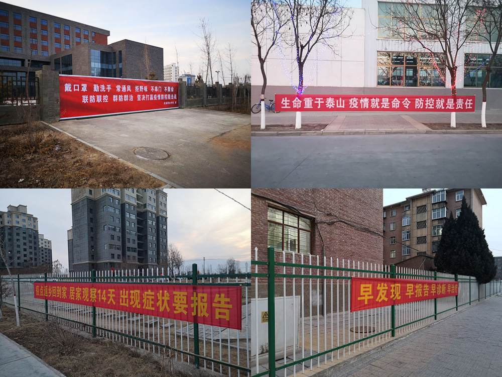 學(xué)院面向師生和社會人員,加強(qiáng)疫情防控內(nèi)外宣傳。在校園圍墻醒目位置設(shè)置內(nèi)容為:“戴口罩、勤洗手、常通風(fēng)、拒野味、不串門、不聚會”,“聯(lián)防聯(lián)控、群防群治、堅決打贏疫情防控阻擊戰(zhàn)”等宣傳標(biāo)語;在校園內(nèi)、家屬區(qū)等地顯著位置設(shè)置:“生命重于泰山、疫情就是命令、防控就是責(zé)任”,“重科學(xué)、聽官宣、不信謠、不傳謠”,“疫點返鄉(xiāng)回到家、居家觀察14天、出現(xiàn)癥狀要報告”,“早發(fā)現(xiàn)、早報告、早診斷、早治療”等宣傳標(biāo)語、橫幅。通過線上線下、校內(nèi)校外全方位教育、宣傳、號召、引導(dǎo),營造了師生和社會人員高度重視、科學(xué)嚴(yán)謹(jǐn)、從我做起、同舟共濟(jì)嚴(yán)格防控疫情的濃厚氛圍和戰(zhàn)勝疫情的堅定信心,為早日打贏疫情防控戰(zhàn)凝聚了共識、匯聚了強(qiáng)大的精神力量。