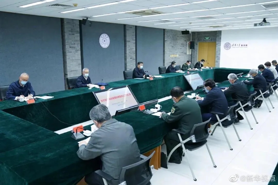 隨后,習(xí)近平在清華大學(xué)醫(yī)學(xué)院主持召開座談會(huì),聽取科技部關(guān)于全國(guó)藥品和疫苗研發(fā)工作,國(guó)家衛(wèi)生健康委關(guān)于有效臨床應(yīng)用經(jīng)驗(yàn)和有效診療方案總結(jié)推廣工作的情況匯報(bào)。