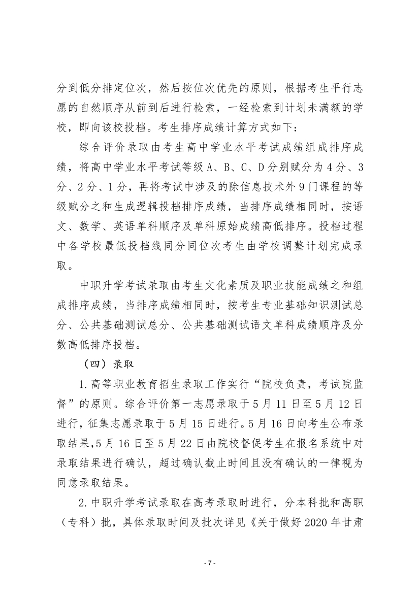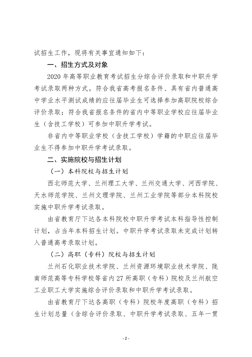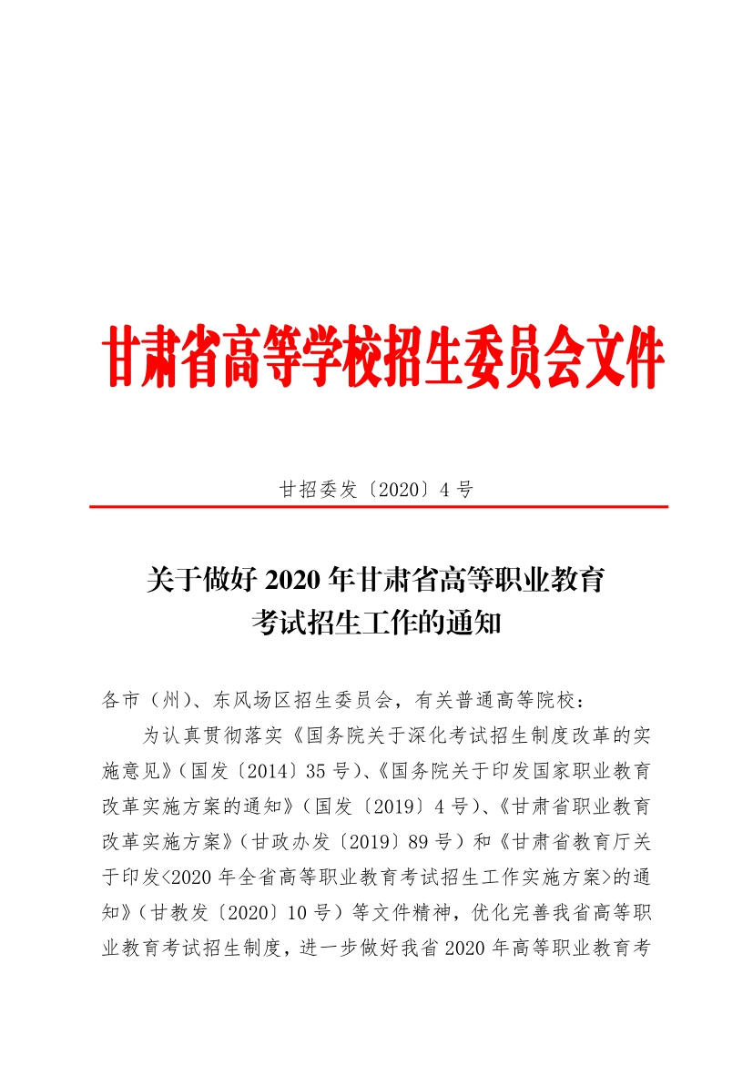 關于做好2020年甘肅省高等職業(yè)教育考試招生工作的通知