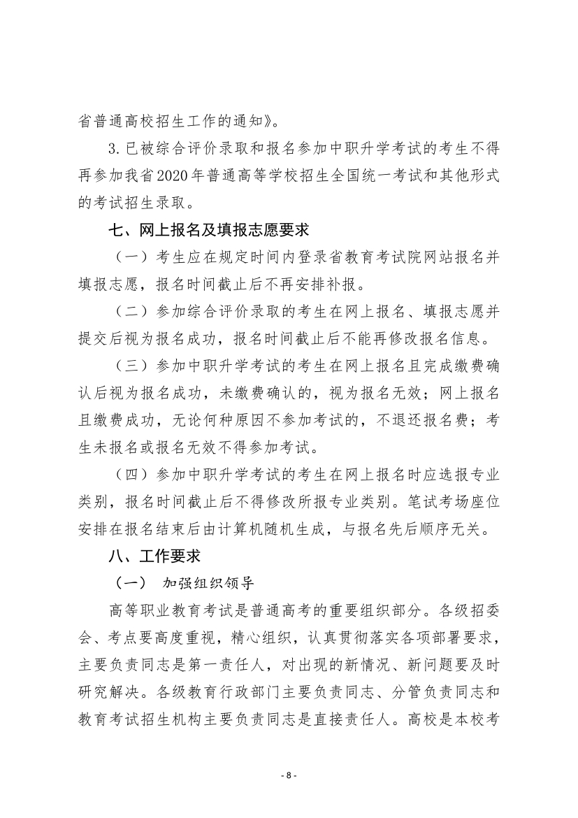 關于印發(fā)《2020年全省高等職業(yè)教育考試招生工作實施方案》的通知