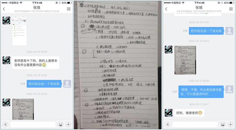 現(xiàn)代農(nóng)業(yè)技術(shù)系和汽車工程系的幾位學(xué)生春節(jié)前外出打工時,因疫情爆發(fā)未能及時返回,被滯留當(dāng)?shù)亍R咔榫徍秃笃髽I(yè)復(fù)工,學(xué)生為了能按時參加在線學(xué)習(xí),努力克服了時間不足、上網(wǎng)不便、網(wǎng)絡(luò)卡頓等諸多問題,白天工作、晚上學(xué)習(xí),刻苦的身影令人動容。
