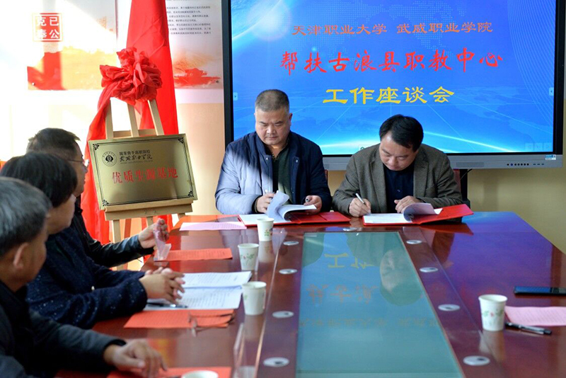 對(duì)接會(huì)上,趙明為古浪職教中心頒授“優(yōu)質(zhì)生源基地”牌匾,簡(jiǎn)要介紹了學(xué)院近年來(lái)取得的重要辦學(xué)成果。他表示,學(xué)院今年顯著加強(qiáng)了同古浪職教中心的合作力度,今后還要擴(kuò)大合作培養(yǎng)專業(yè),全方位深化合作關(guān)系,共同培養(yǎng)職業(yè)技能人才。他強(qiáng)調(diào),通過(guò)兩校的合作辦學(xué),我們要取長(zhǎng)補(bǔ)短,促進(jìn)中高職貫通培養(yǎng)大力發(fā)展。會(huì)上,王守云同古浪職教中心校領(lǐng)導(dǎo)簽署了“2020年中高職貫通培養(yǎng)辦學(xué)合作協(xié)議”。