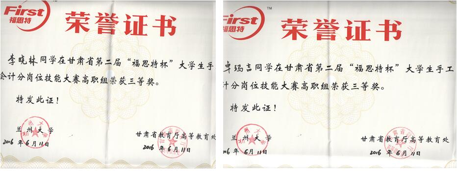 經(jīng)濟(jì)管理系會計電算化大專班四名學(xué)生在李惠蘭老師帶領(lǐng)下于2016年6月10日赴蘭州大學(xué)參加了甘肅省第二屆“福思特”大學(xué)生手工會計分崗位技能競賽。