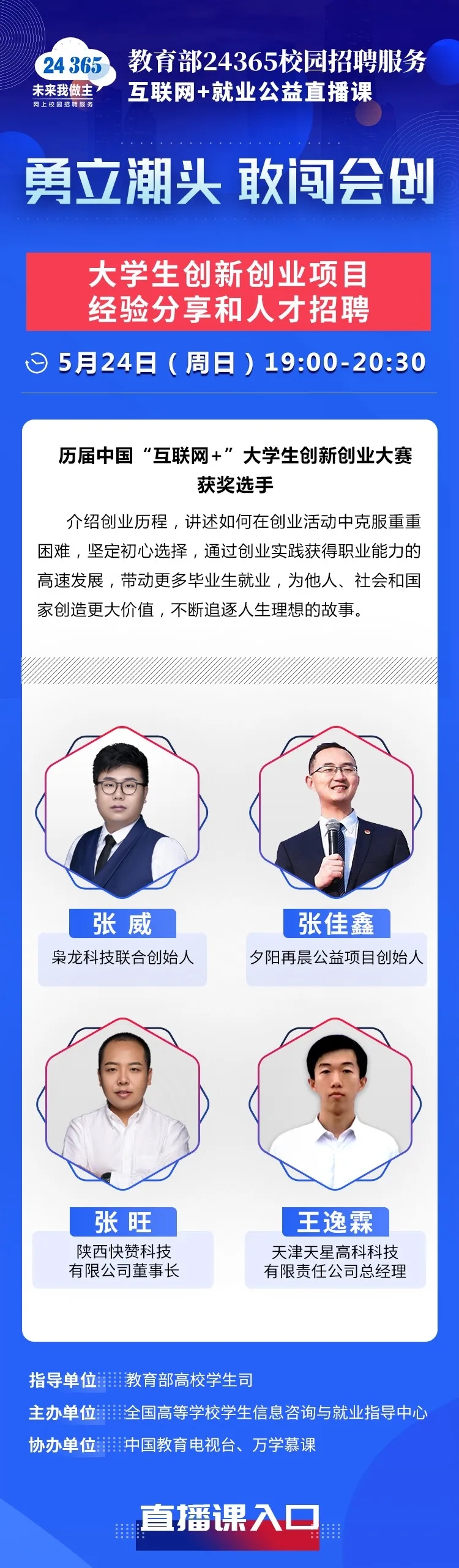 教育部24365就業(yè)公益課程:勇立潮頭 敢闖會創(chuàng)——大學生創(chuàng)新創(chuàng)業(yè)項目經驗分享和人才招聘